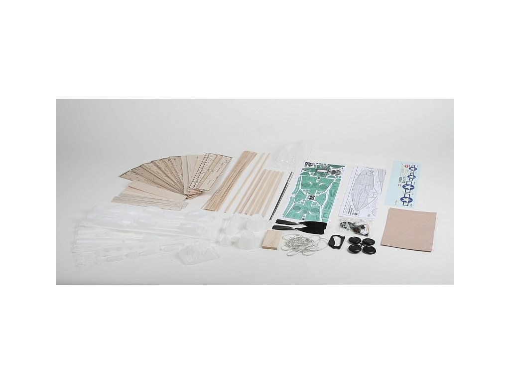 Stavebnice obsahuje: balsové předseknuté díly, balsové nosníky, předseknuté díly z plastikové překližky, vakuově lisované maketové díly (kryt motoru, motor...), čirý acetátový výlisek krytu kabiny, ocelovou strunu na podvozek a další drobné díly, plastová kola, potahový papír, rukojeť a vahadlo pro upoutaný model, velký aršík mokrých obtisků, stavební plán.