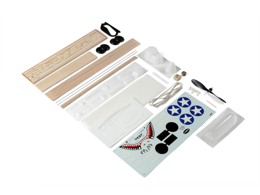 Stavebnice obsahuje: balsové předseknuté díly, balsové nosníky, předseknuté díly z plastikové překližky, vakuově lisované maketové díly (kryt motoru, kabiny...), plastovou vrtuli s hřídelí a hlavicí, gumový svazek (guma 5x1mm), plastová kola, ocelovou strunu na podvozek a další drobné díly, plastová kola, potahový papír, aršík mokrých obtisků, stavební plán.