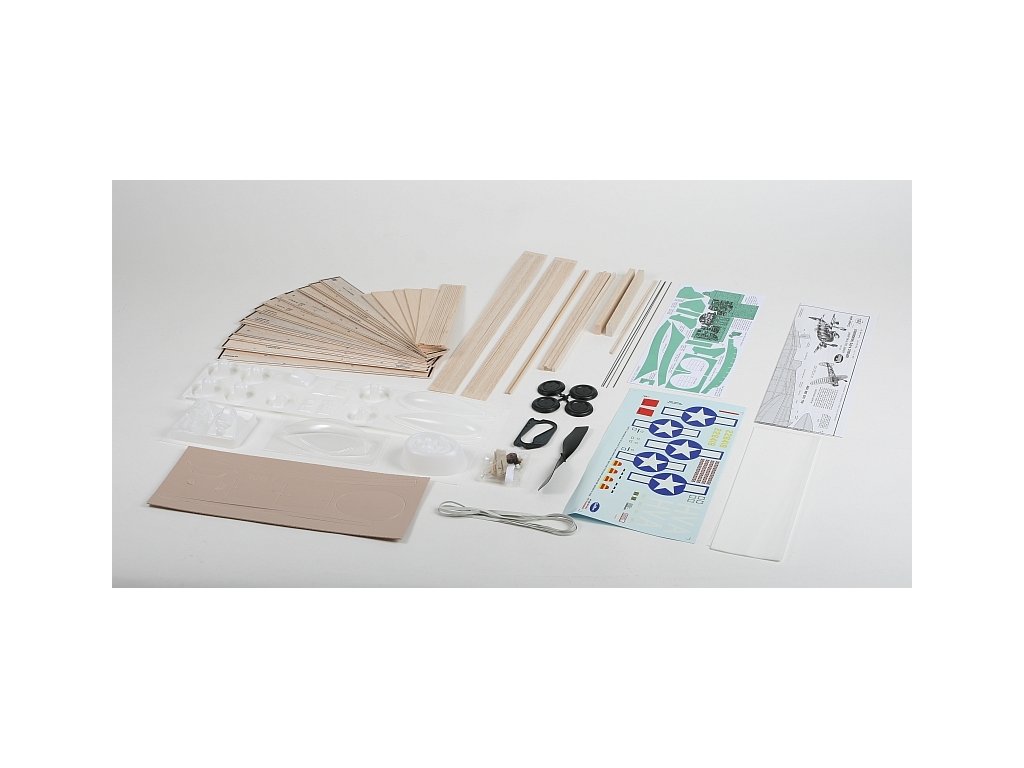 Stavebnice obsahuje: balsové předseknuté díly, balsové nosníky, předseknuté díly z plastikové překližky, vakuově lisované maketové díly (kryt motoru, motor...), čirý acetátový výlisek krytu kabiny, plastovou vrtuli s hřídelí a hlavicí, gumový svazek (guma 5x1mm), ocelovou strunu na podvozek a další drobné díly, plastová kola, potahový papír, rukojeť a vahadlo pro upoutaný model, velký aršík mokrých obtisků, stavební plán.