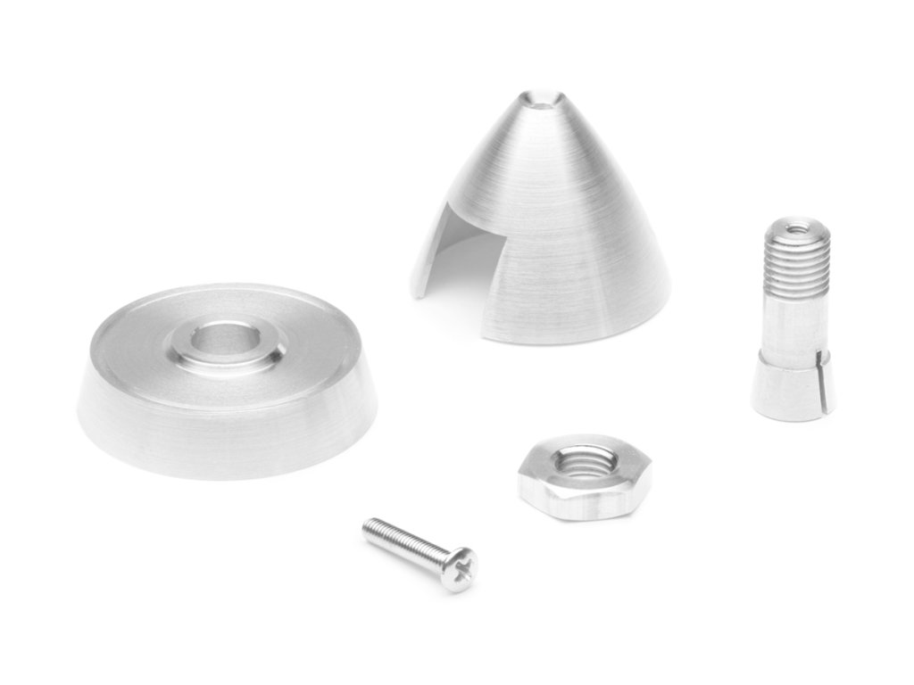 Precizní duralový kužel pro pevnou vrtuli o průměru 50 mm s kleštinou 5,0 mm a středovým upevňovacím šroubem M3. Vyrobeno v České republice.Doplňkové parametry