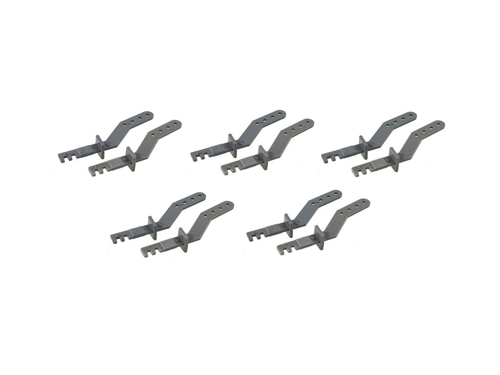 Páka kormidla pro malé elektro modely letadel. V kormidel stačí vyříznout drážku, prostrčit páku a na druhé straně se nasvakne podložka.