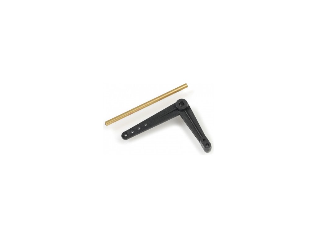 Páka má osu otáčení na mosazné trubce 3/2,5mm, rozteč otvorů na delší páce je 43mm, na kratší 34mm.