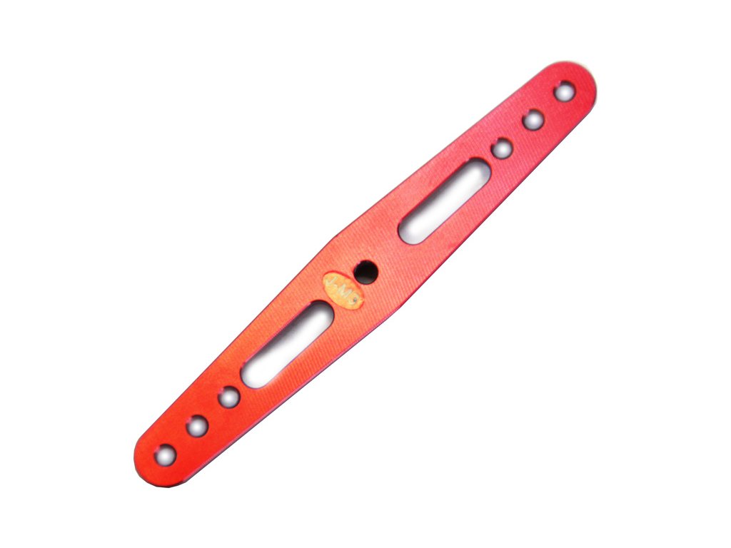 Oboustranná hliníková páka pro serva s tisícihranem JR/Spektrum. Celková délka 85 mm, osová vzdálenost otvorů M3 od středu tisícihranu páky 26, 32 a 38 mm.