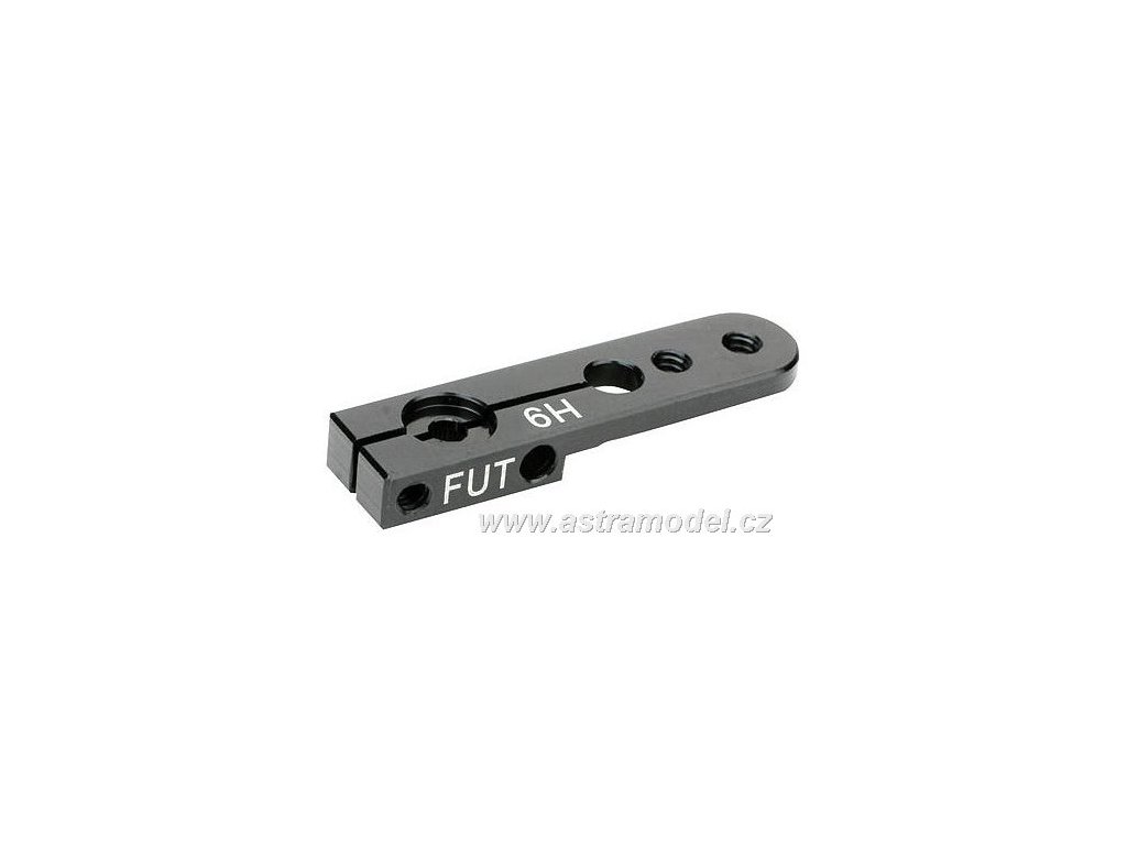 Páka serva jednostranná hliníková Futaba s roztečí otvorů 19 mm a 25 mm, s eliminací vůle na tisícihranu dvojicí šroubů. Dojde k utažení a sevření tsícihranu, pevné spojení bez vůle.