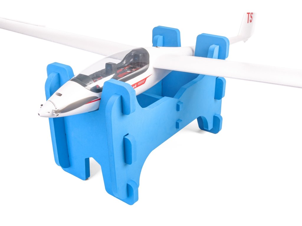 Pěnový držák letadla pro montáž v dílně či sestavení na letišti. Rozměry: 59×30×36cm. Vyrobeno z EVA pěny.