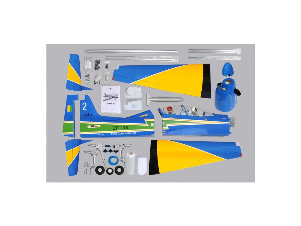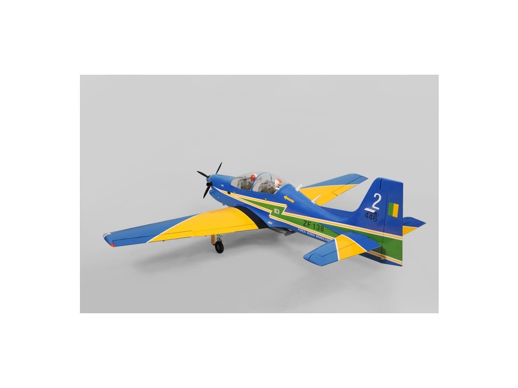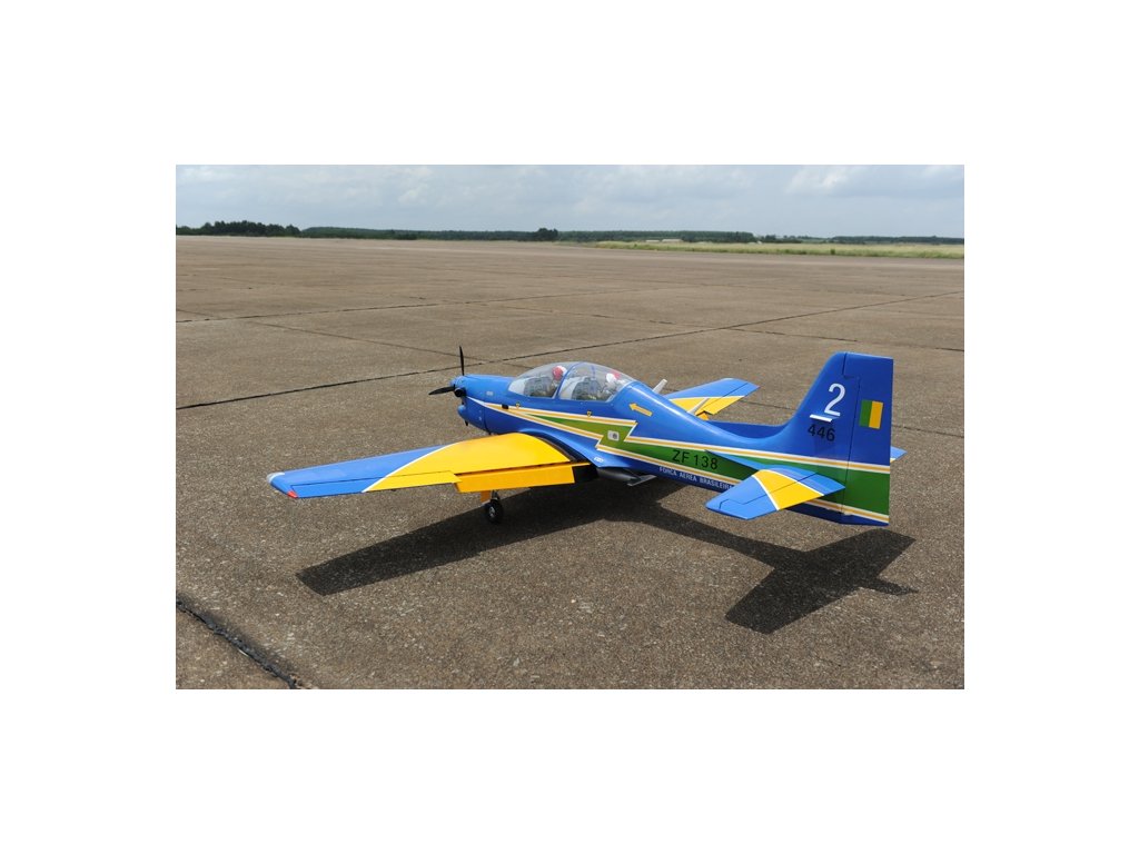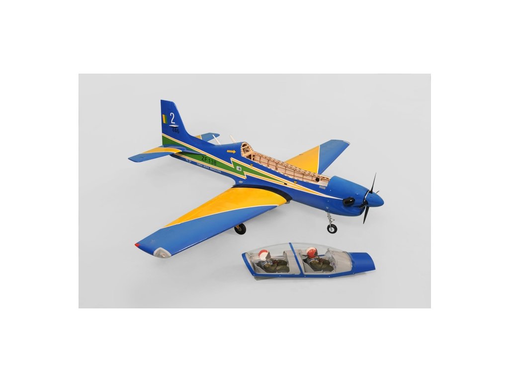 ARF stavebnicebrazilského vojenského cvičného letounu klasické celobalsové konstrukce pro pohon benzínovým motorem 40-60 ccm pro zkušené piloty obřích modelů.