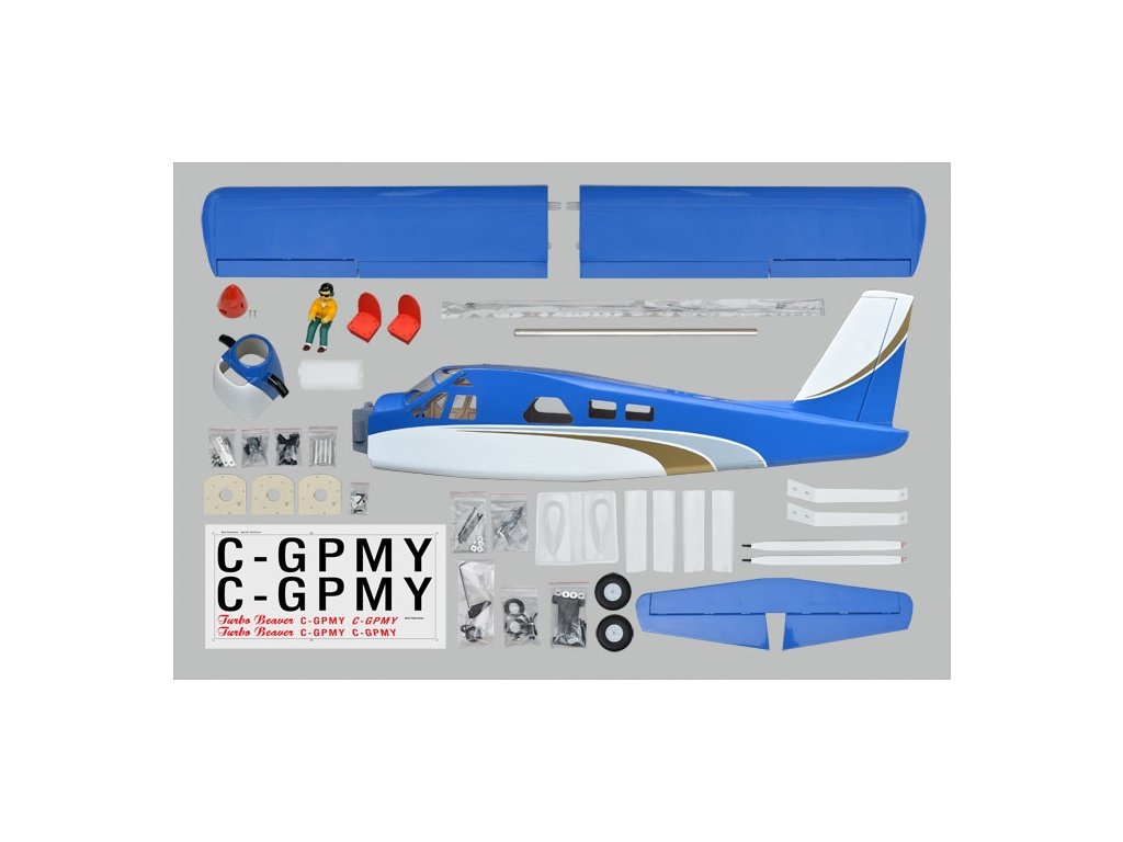 Stavebnice obsahuje: postavený a potažený trup, nastříkaný laminátový kryt motoru, hotové vzpěry křídel, postavená a potažená křídla a ocasní plochy, duralový podvozek, sadu příslušenství, kola, samolepky a obrázkový návod.