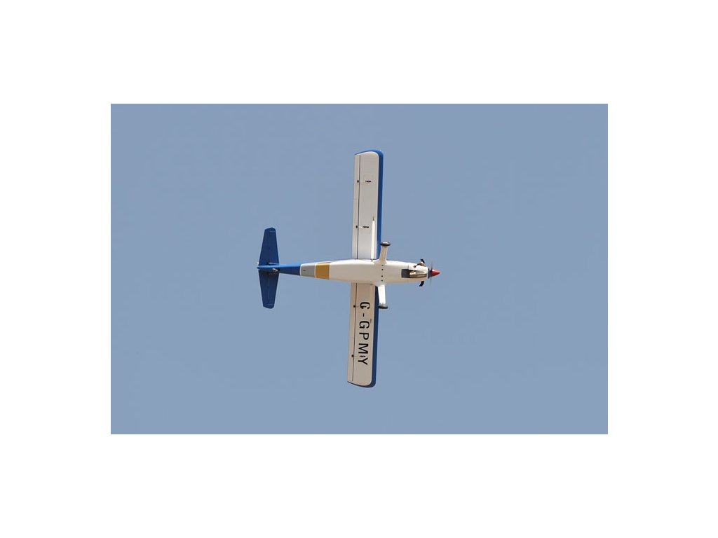 Model je potažen nažehlovací fólií Oracover, s imatrikulací stroje létajícího ve Velké Británii.