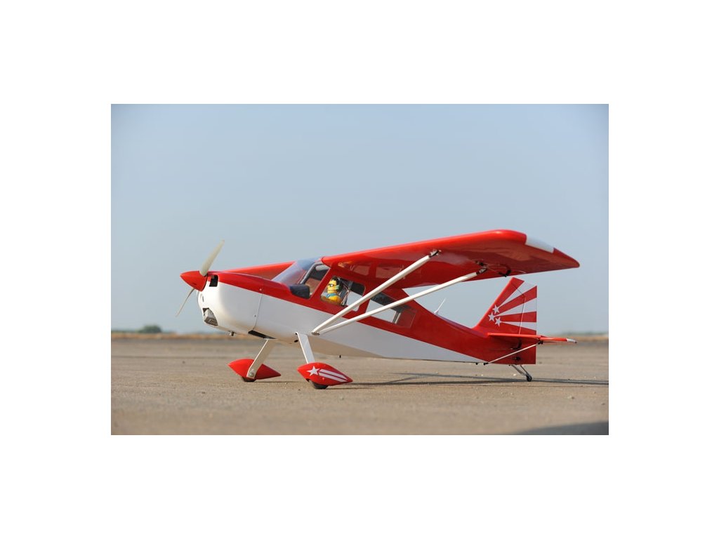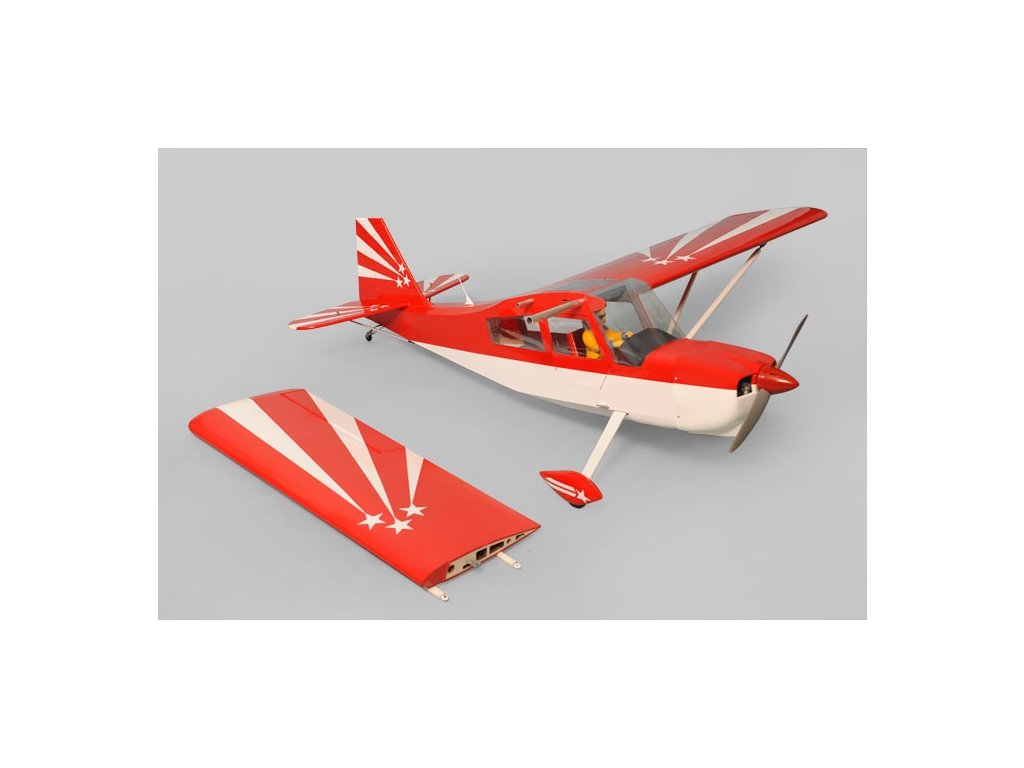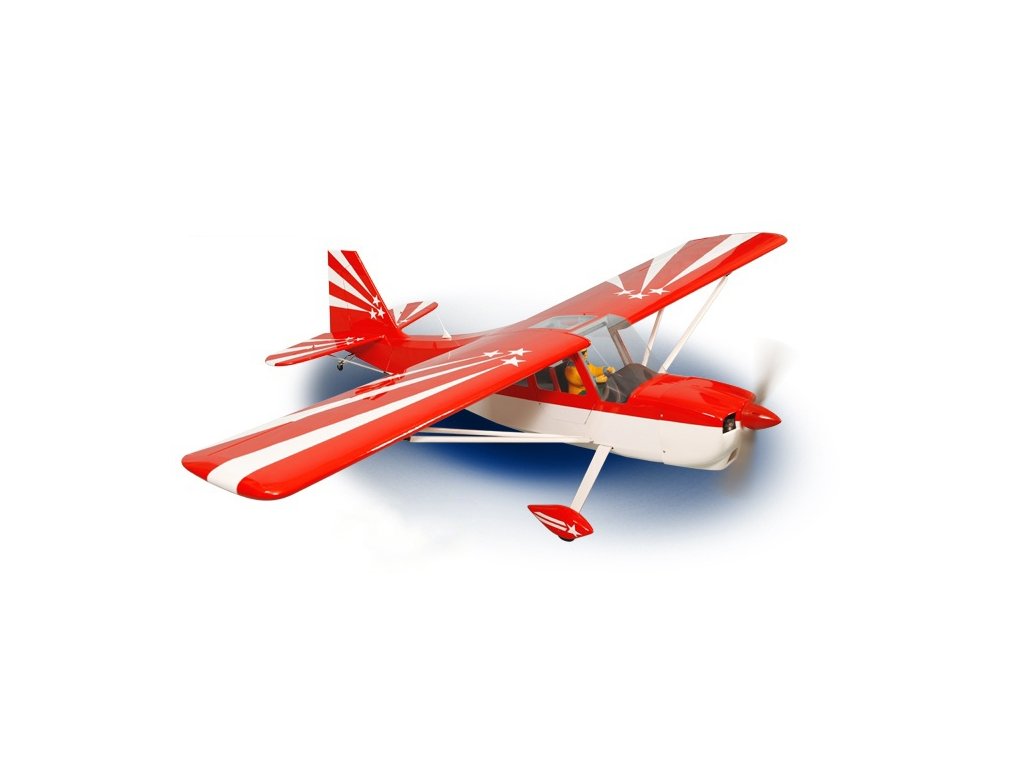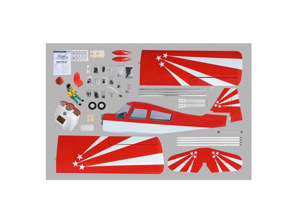 Polomaketa amerického sportovního a cvičného hornoplošníku pro pohon dvoutaktem 20 ccm, čtyřtaktem 20-30 ccm, benzínovým motorem 20-33 ccm nebo elektromotorem třídy AXI 4130 až 5320 s 5-6S LiPo. Decathlon je vhodný jako první obří model s benzínovým motorem - dokončení modelu jde rychle, nebudete potřebovat drahá serva ani extra nákladnou RC soupravu; a letové vlastnosti klasického kabinového hornoplošníku s přiměřeně robustním duralovým podvozkem jsou příjemné a bez záludností.