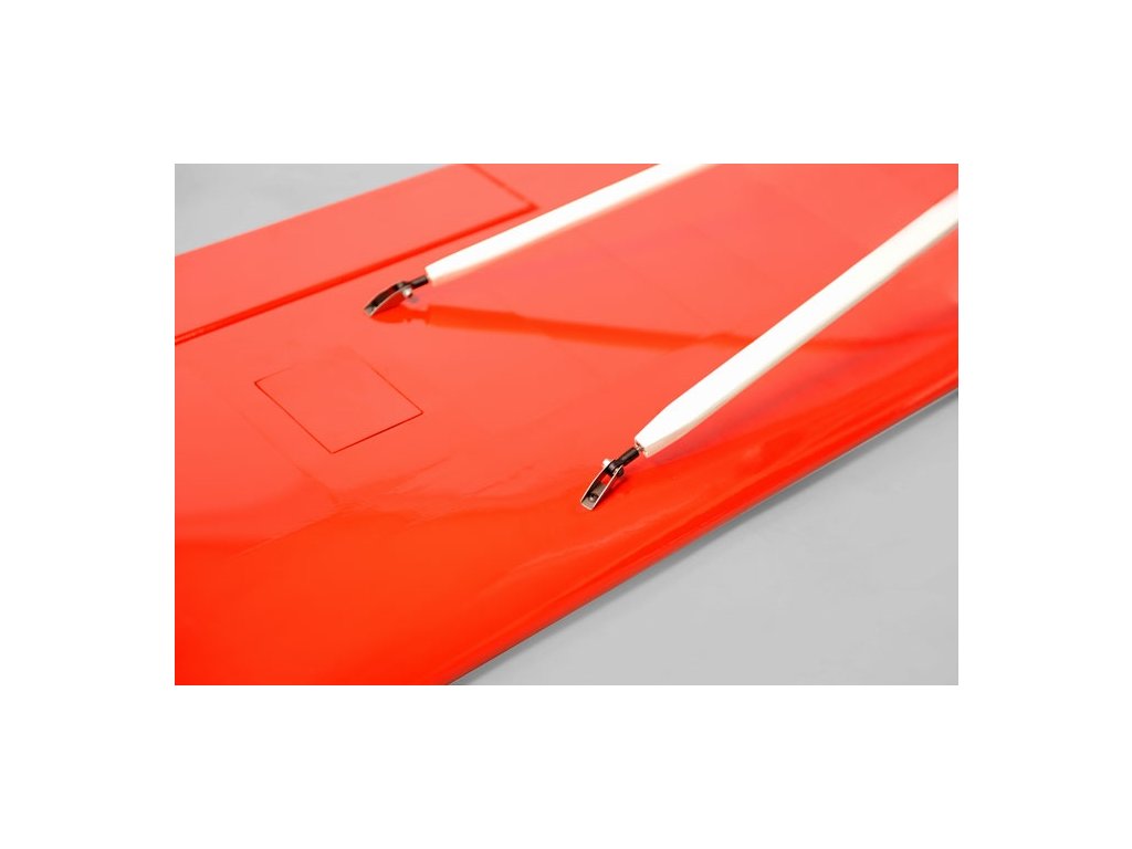 Dvoudílné křídlo s polosouměrným profilem s polovinami nasouvanými z boku na duralovou trubkovou spojku je klasické celobalsové konstrukce s tuhým potahem torzní skříně. Křidélka jsou ovládána 2 nezávislými servy uloženými v křídle.
