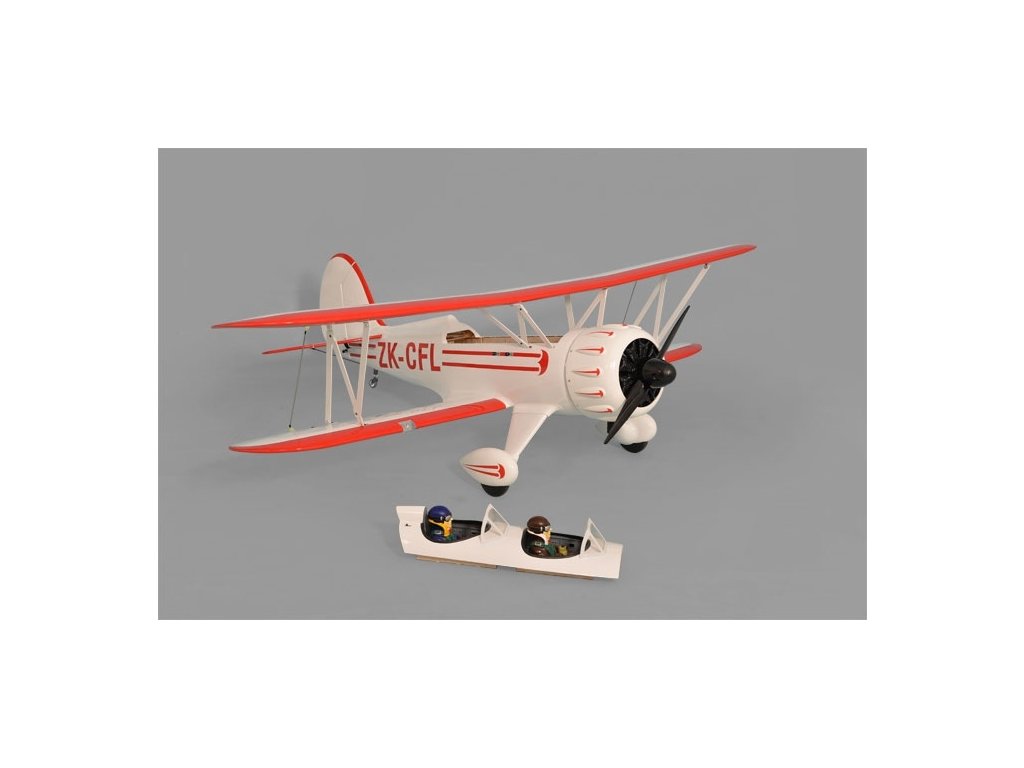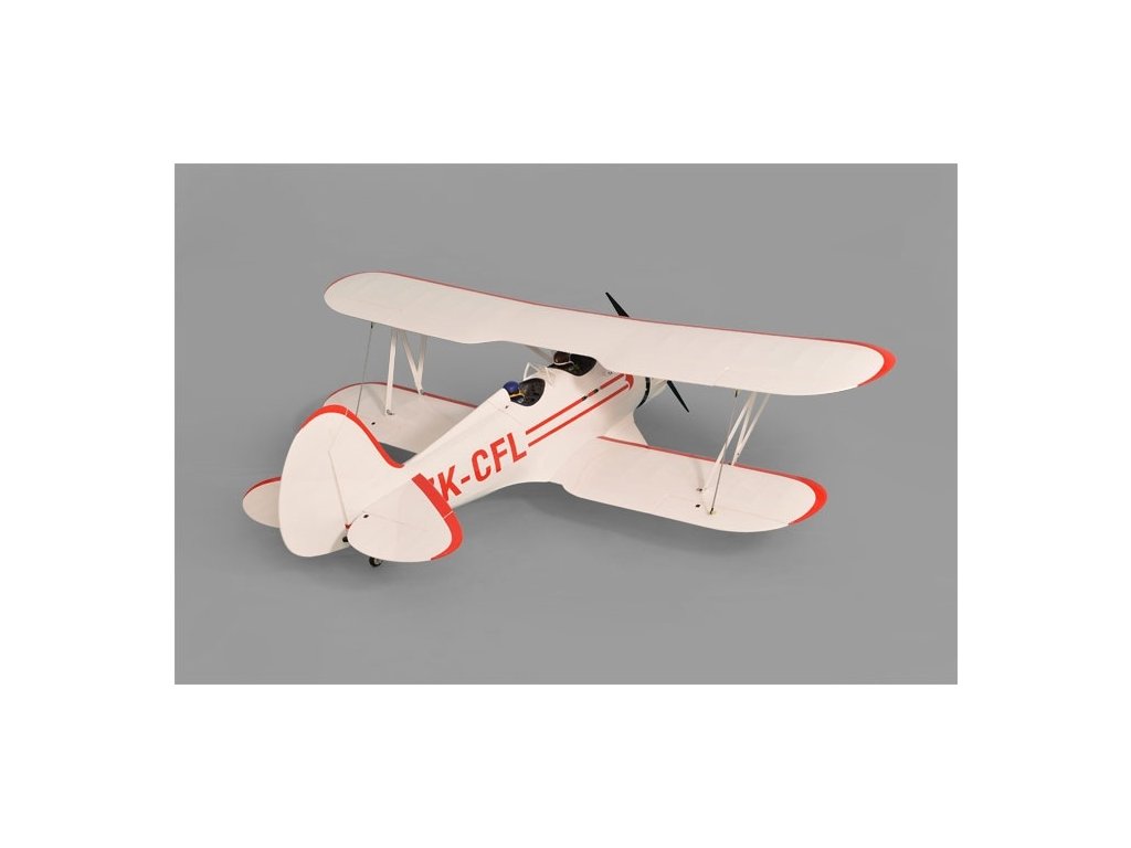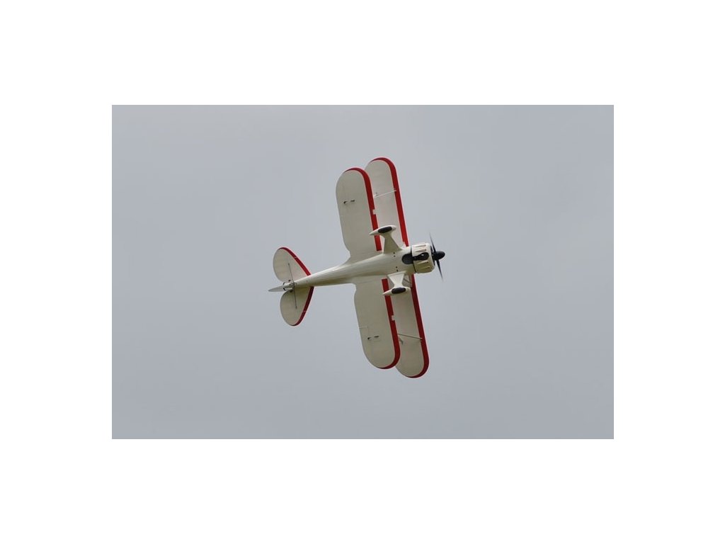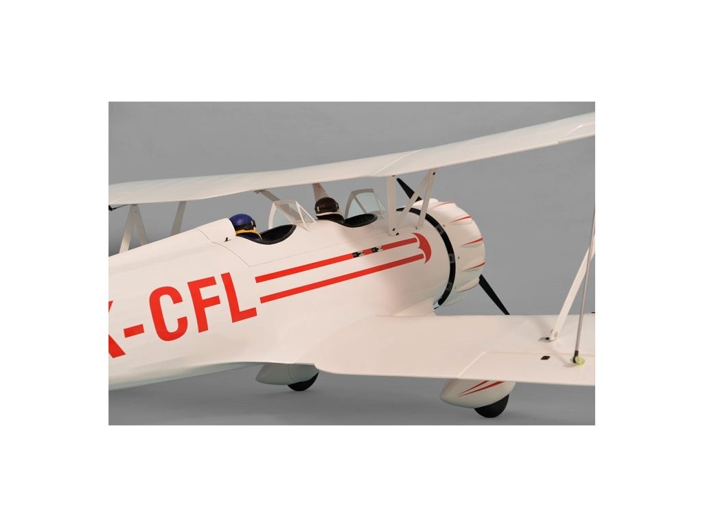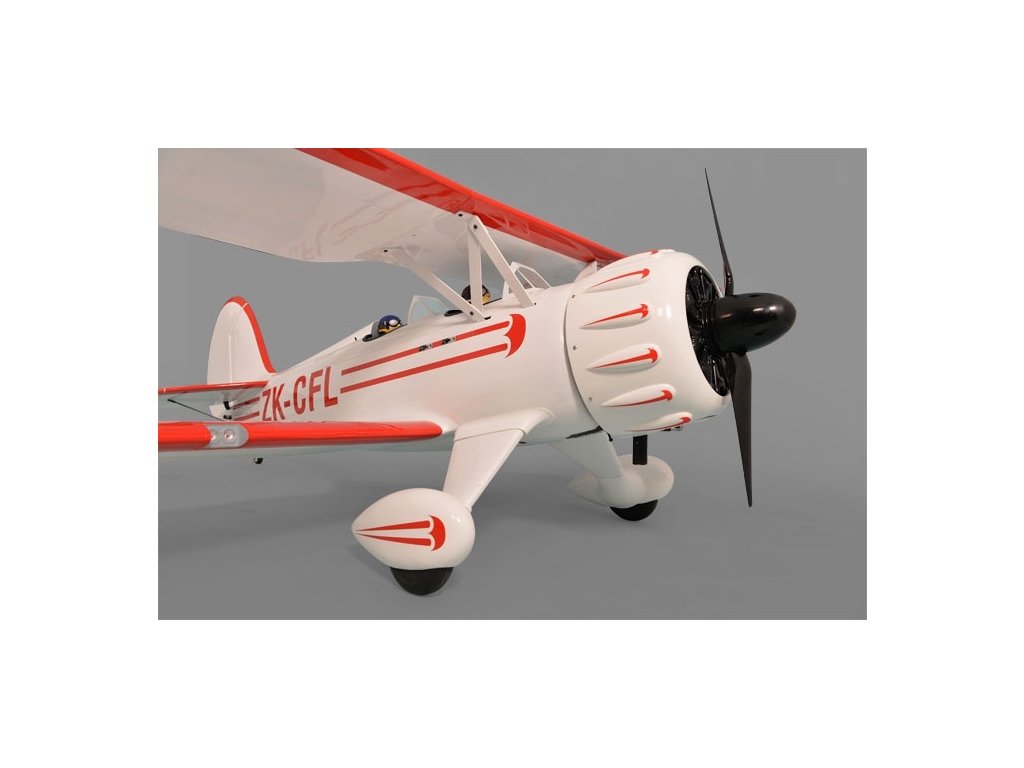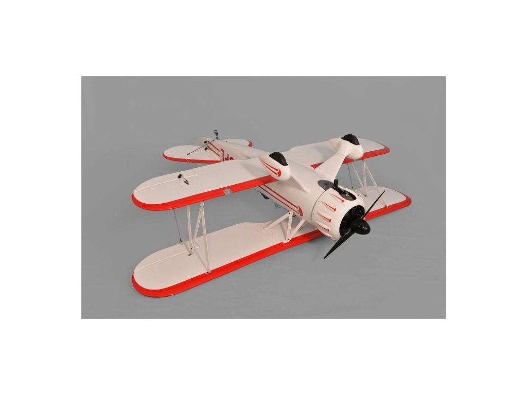 Polomaketa amerického akrobatického dvojplošníku klasické celobalsové konstrukce pro pohon benzínovým motorem 50-60 ccm nebo elektromotorem třídy AXI 5345 pro piloty spolehlivě zvládající létání s velkými akrobatickými modely.