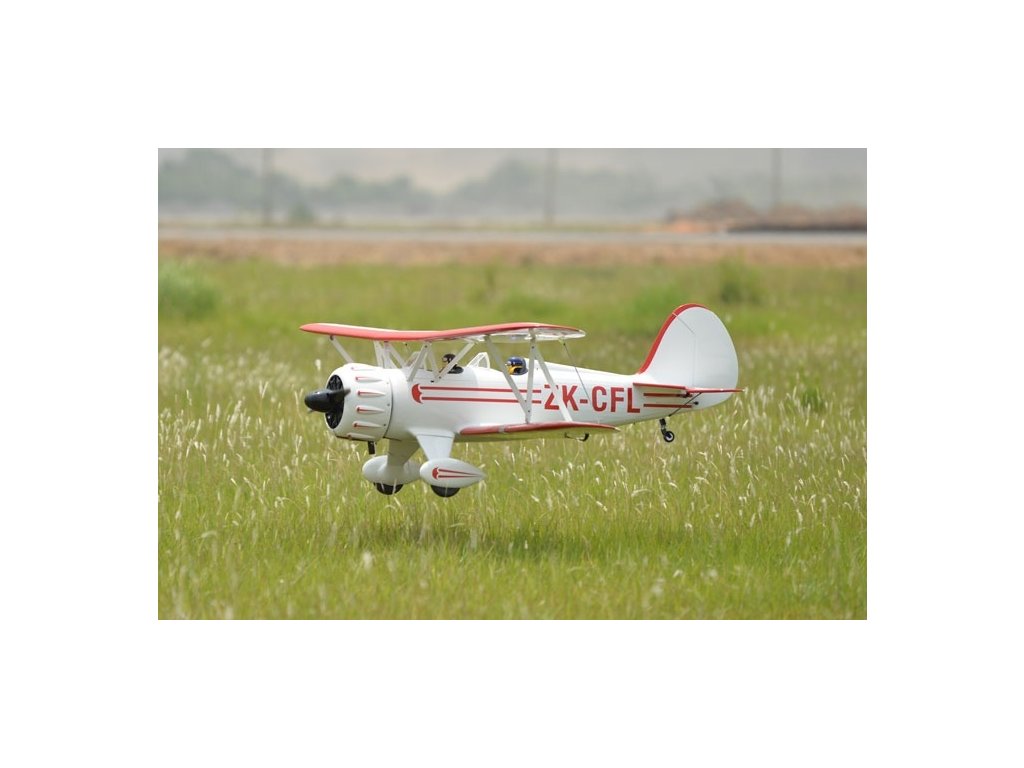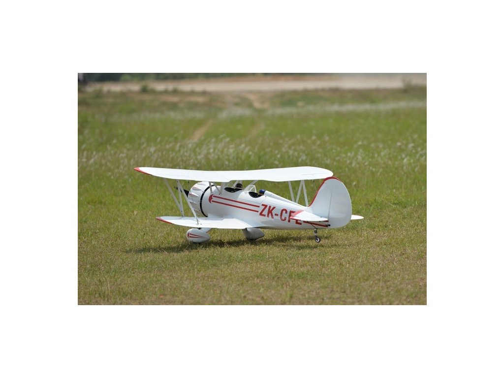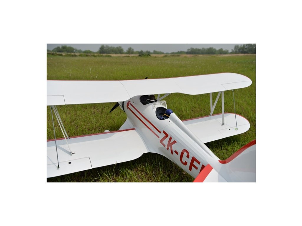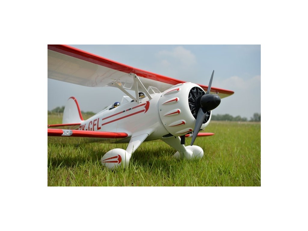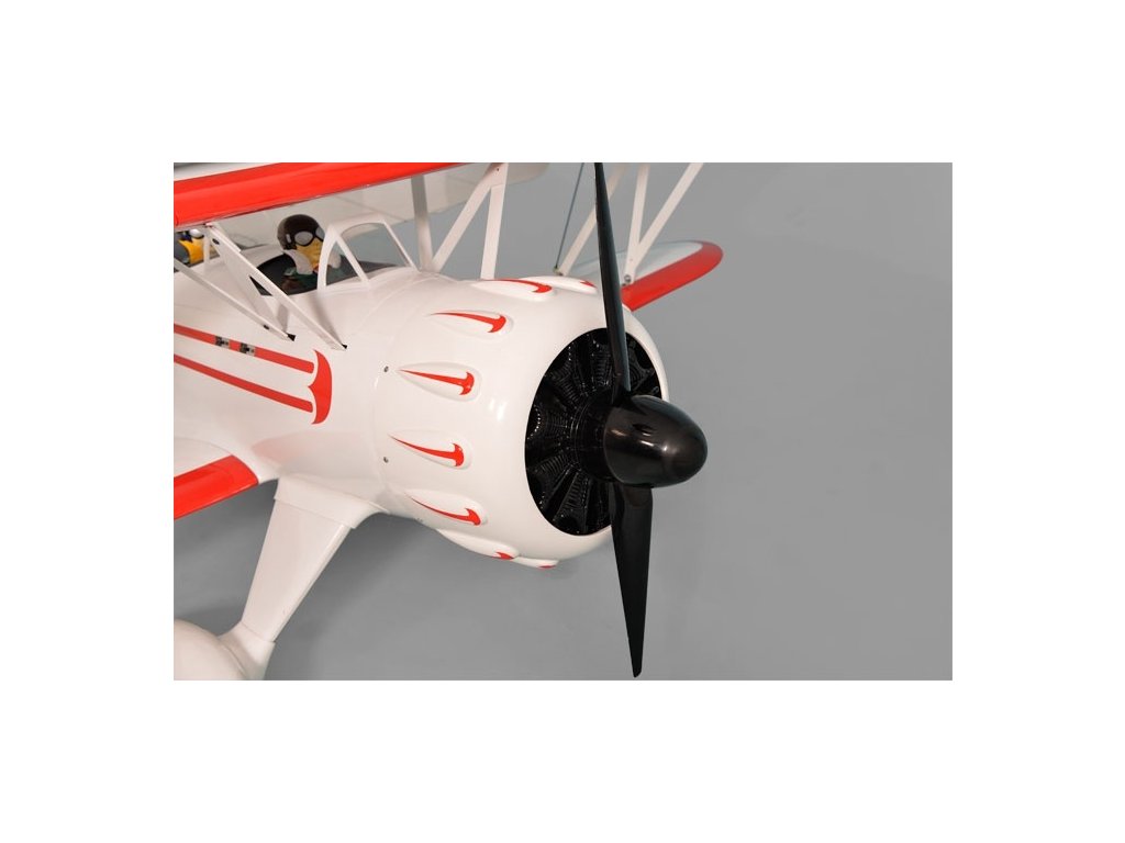 Polomaketa amerického akrobatického dvojplošníku klasické celobalsové konstrukce pro pohon benzínovým motorem 50-60 ccm nebo elektromotorem třídy AXI 5345 pro piloty spolehlivě zvládající létání s velkými akrobatickými modely.