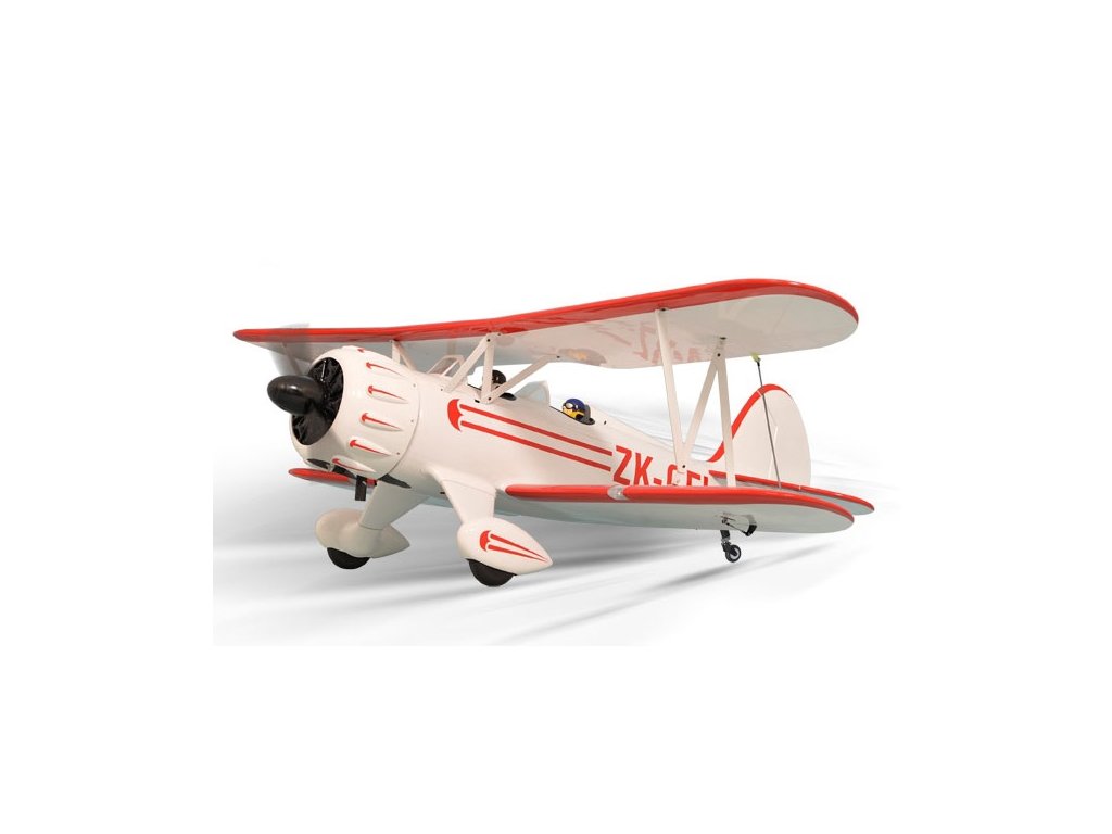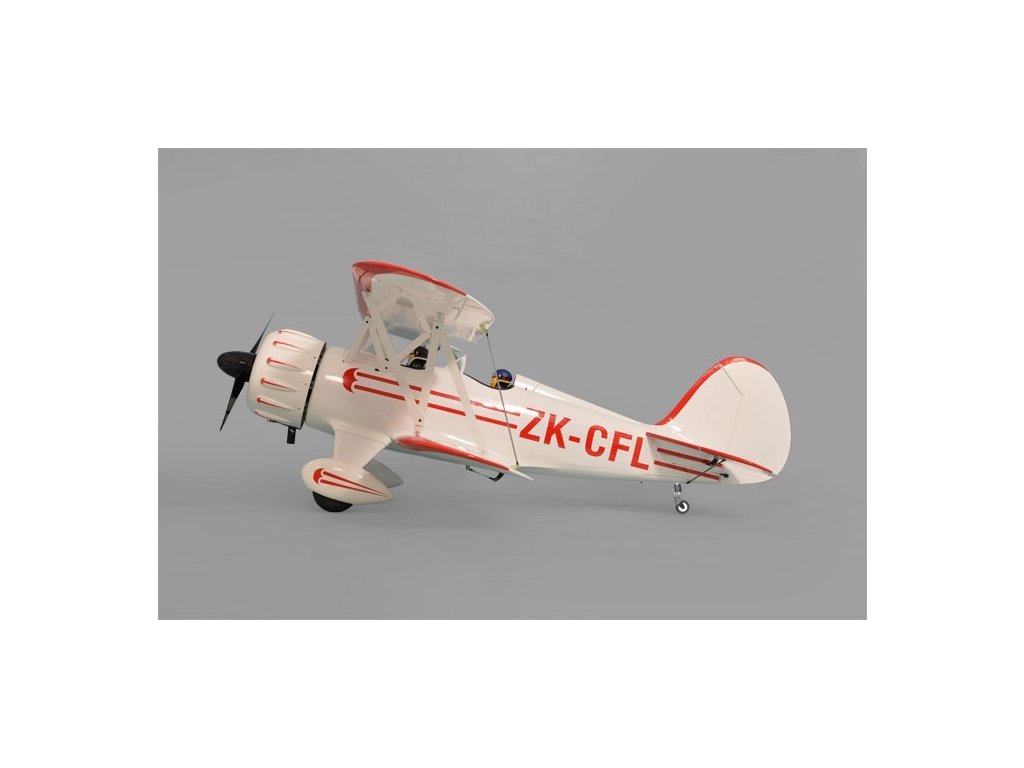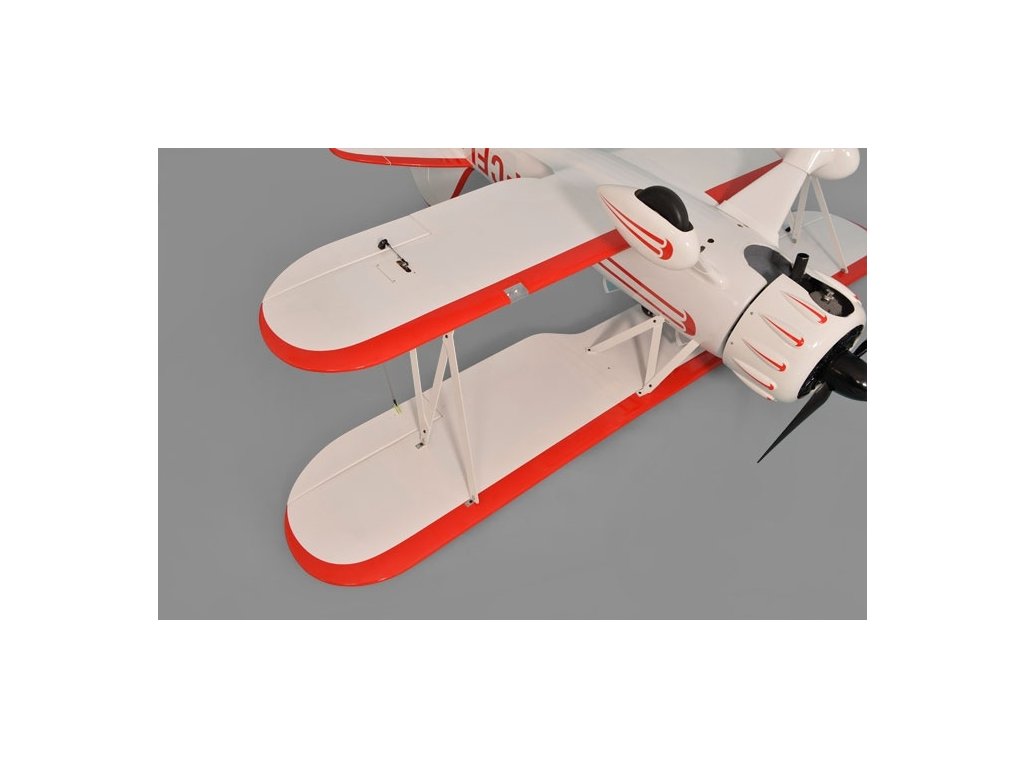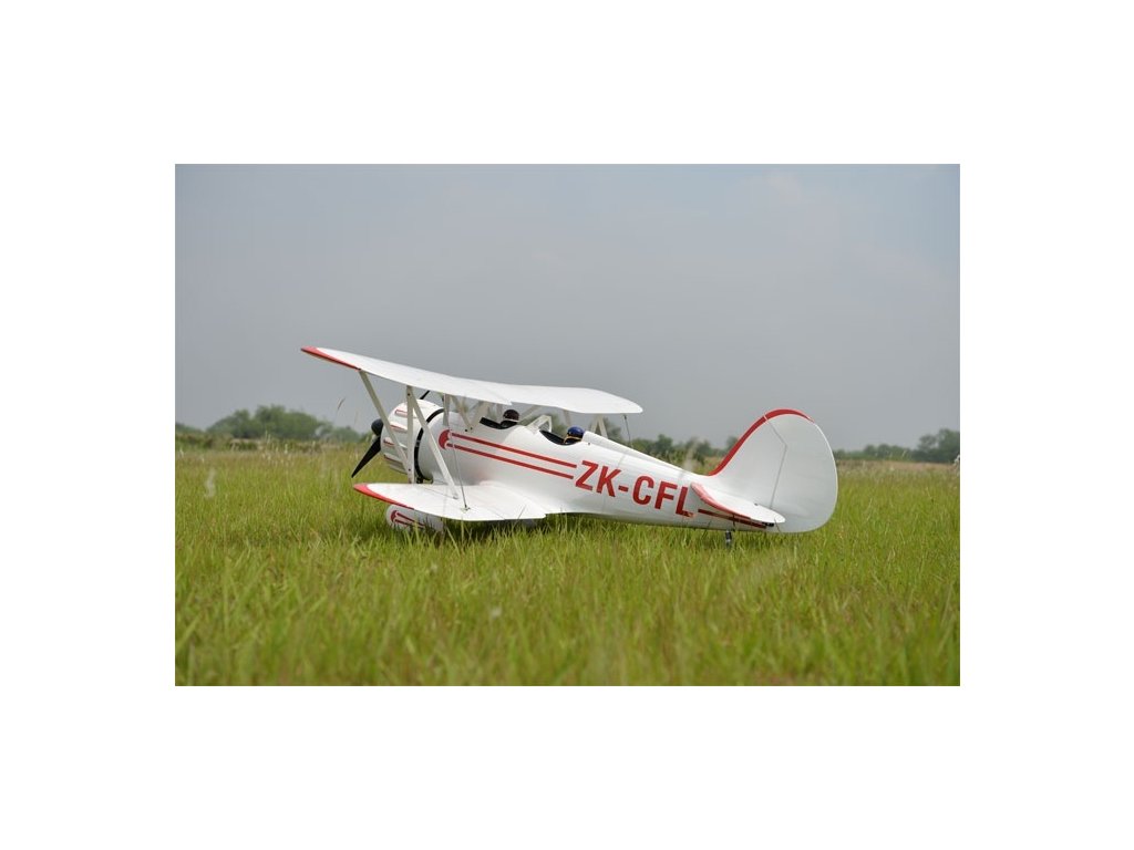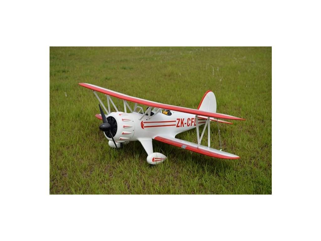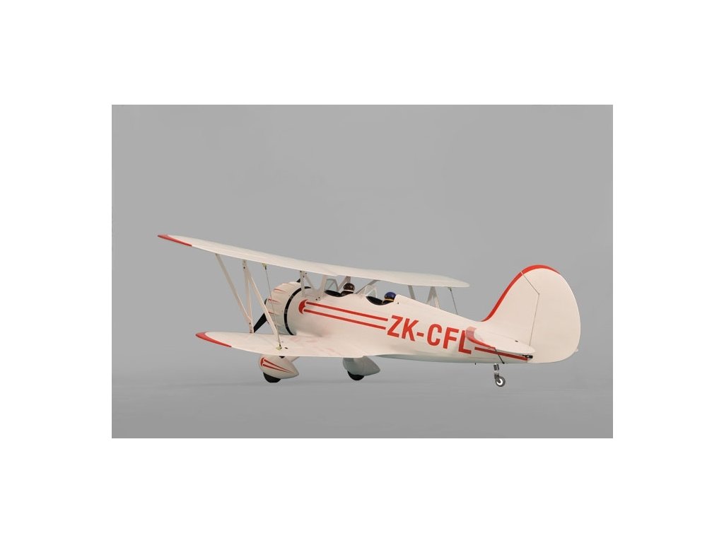 Polomaketa amerického akrobatického dvojplošníku klasické celobalsové konstrukce pro pohon benzínovým motorem 50-60 ccm nebo elektromotorem třídy AXI 5345 pro piloty spolehlivě zvládající létání s velkými akrobatickými modely.