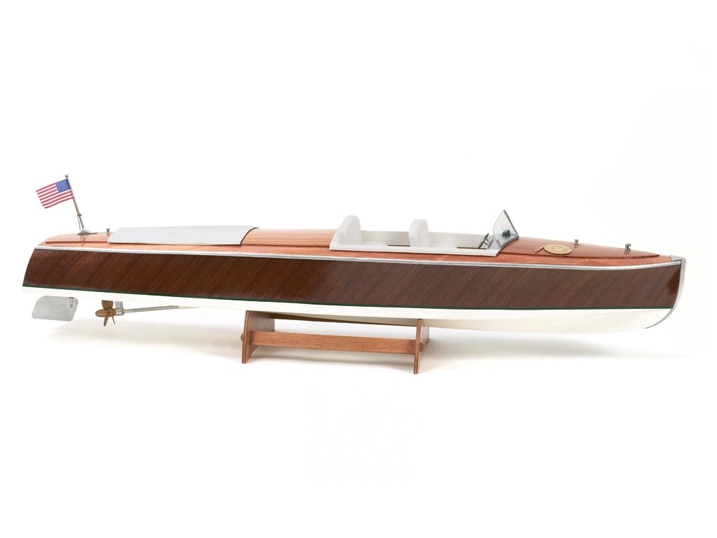 Maketa amerického 34-stopového rychlého motorového člunu z 20. let dvacátého století. Lodi tohoto typu sloužily jako závodní čluny nebo pro přepravu movitých majitelů, hollywoodských hvězd a jiné smetánky mezi přístavem a většími jachtami. Tomu také odpovídalo hojné použití mahagonu a teaku v konstrukci lodi, chromovaných kovových částí, luxusně polstrovaných kožených sedaček a jiného nóbl příslušenství. Stavebnice v měřítku 1:15 je určena pro začínající nebo mírně pokročilé lodní stavitele.