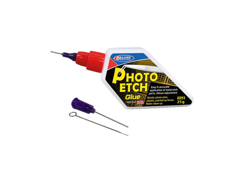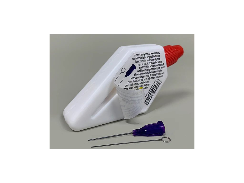 Lepidlo Photo Etch je speciálně vytvořeno pro lepení fotoleptaných dílů. Je na vodní bázi, snadno se roztírá, nekřehne. Perfektně lepí kovy a plasty. Má dlouhou životnost, umožňuje úpravu, umožňuje čištění vodou.