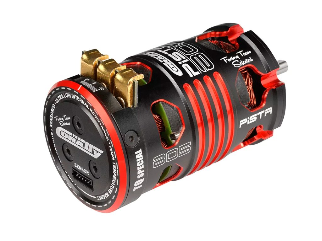 TEAM CORALLY Pista 805 střídavý motor pro 1/8 On a Off-Road, SCT, Pan Car, GT-Rally RC modely. Provozní napětí: 2S-4S, délka samotného těla 68,0mm, průměr: 42mm, váha: 340g, otáčky na 1Volt: 2.150 o/min, hřídel 5,00mm, Výkon: 2400W. EFRA, BRCA, IFMAR, ROAR regulérníDoplňkové parametry