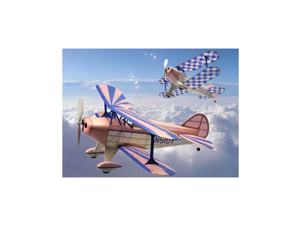 Stavebnice volně létající polomakety amerického akrobatického letadla určená pro pohon gumovým svazkem. Model je jednoduché klasické celobalsové konstrukce v rozsypu s laserem vyřezávanými dřevěnými díly a plastovými díly zhotovenými vstřikovým lisováním. Trup je konstruován běžnou minimaketářskou technologií - nejprve z balsových lišt sestavíte bočnice, které spojíte polopřepážkami a příčkami. Výsledné oblé tvary získáte po nalepení většího počtu tenkých podélníků. Křídla jsou klasické konstrukce z nosníků a žeber, ocasní plochy z balsových lišt a laserem vyřezávaných dílů.