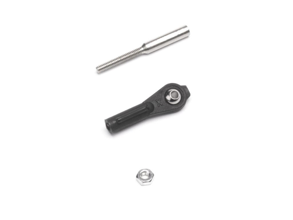 Nylonový pouzdro s kulovým čepem s otvorem 2mm pro pohyb bez tření. M3 závit v nylonovém pouzdře. Včetně ocelové spojky táhla se závitem M3 (KAV0130A) a M3 matky.. Balení 10setů.Doplňkové parametry
