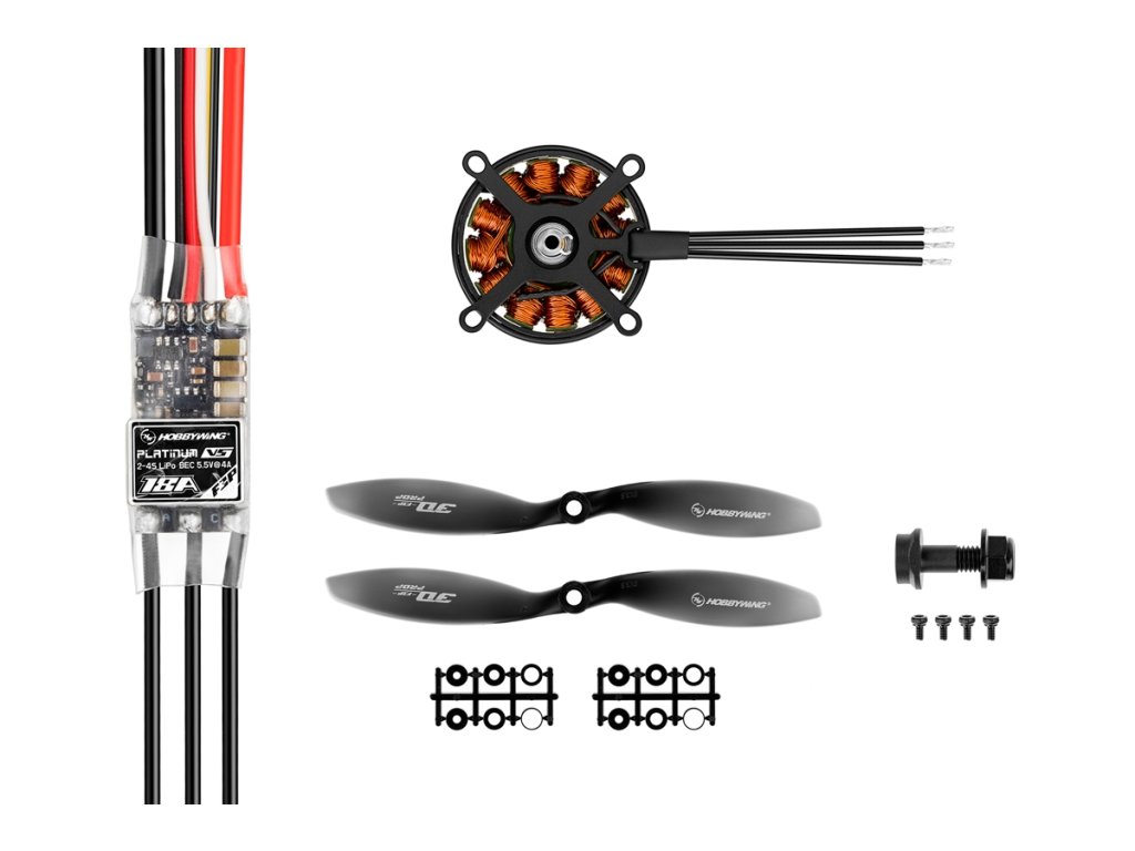 Combo set střídavého elektromotoru PLATINUM 2604SL 1500KV s rotačním pláštěm s regulátorem PLATINUM 18A F3P pro 3D halové akrobatické modely letadel: akro 320g, 3D 200g, KV1500 ot./min na V, napájení 3S LiPo, 2x polykarbonátová vrtule 8x3,8" s unašečem M5.Doplňkové parametry