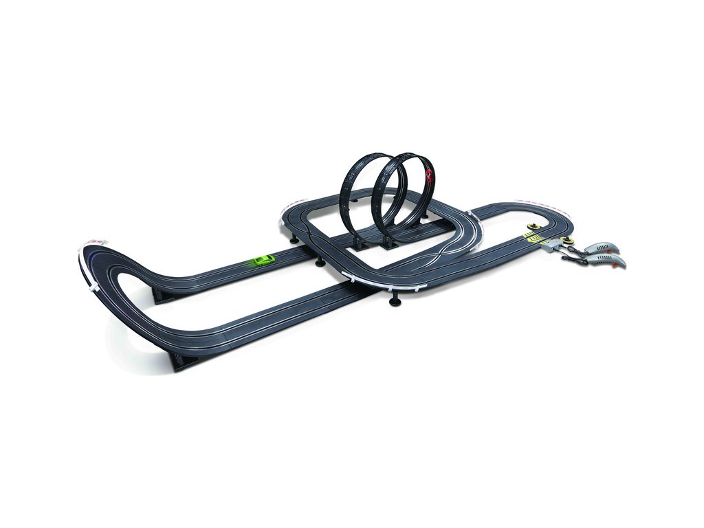 Tato velká a propracovaná auto dráha obsahuje všechny prvky pro maximální zábavu: dlouhý úsek s mostem, 2x looping, klopenou zatáčku, 2x křížení tratí, počítadlo kol a svodidla na trati. Rychlost autíček se reguluje pomocí ovladačů spojených s dráhou kabelem s konektorem Jack. Součástí balení jsou dráhová autíčka Alfa Romeo 4C a Lamborghini Huracán Coupé.