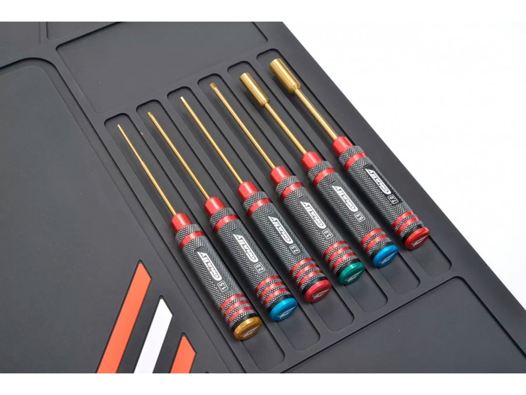 Gumová pracovní/šroubovací podložka s odkládacími přihrádkami.Doplňkové parametry