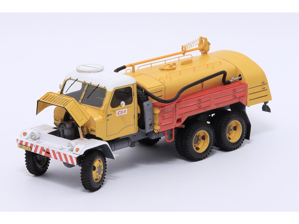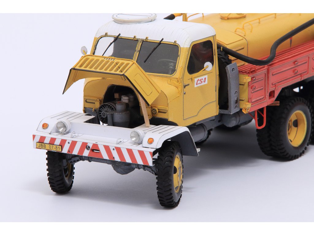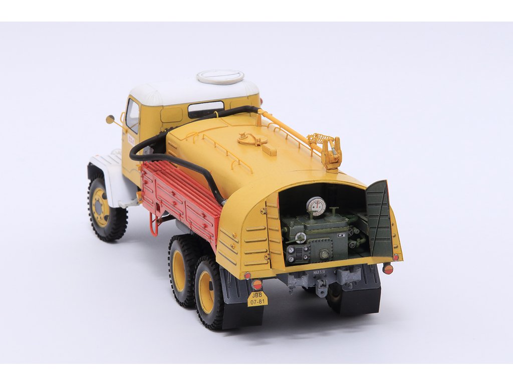 Model můžete vytvořit s interiérem kabiny řidiče a vybavením čerpadlové nástavby či bez nich. Přední kola jsou natáčecí, kapota motoru se dá zvednout. Ráhno s hadicí může být pohyblivé.