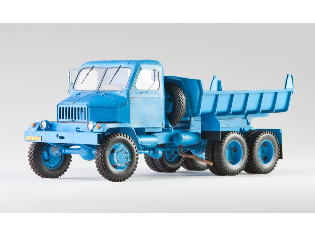 Model můžete vytvořit s interiérem kabiny řidiče či bez něj. Korba je sklápěcí, zadní čelo je pohyblivé. Přední kola jsou natáčecí, kapota motoru se dá zvednout.