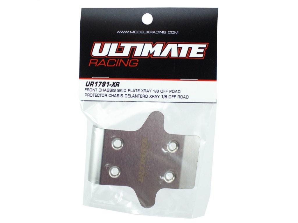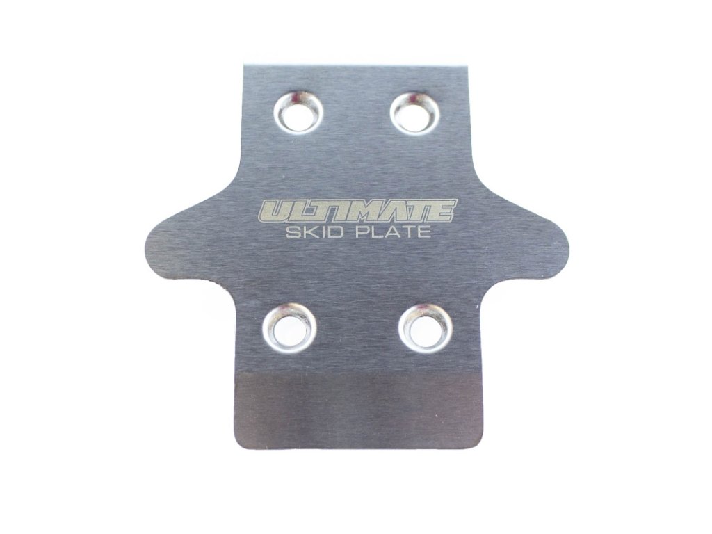 Přední ochranná deska podvozku Ultimate Racing pro Xray 1/8 Off Road. Tato přední deska (skid plate), určená pro platformy XB8 23 a 24, nabízí zvýšenou ochranu podvozku před opotřebením. Je vyrobena z 0,5mm nerezové oceli a je jedním z nejjednodušších způsobů ochrany vašeho vozidla. Balení obsahuje jednu desku stříbrné barvy s laserovým gravírováním Ultimate Skid Plate.