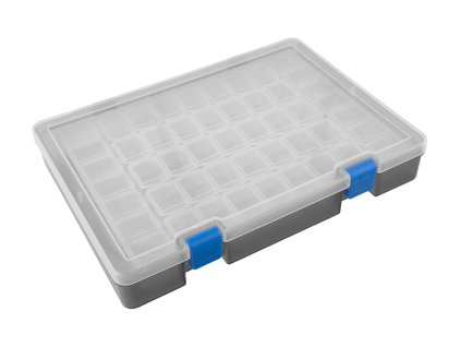 X106229 Box na příslušenství velký (300x200x50mm)Odolný plastový box s bezpečnostní sponou zavírání. Flexibilní rozdělení boxu pro uložení mnoha malých šroubků,...