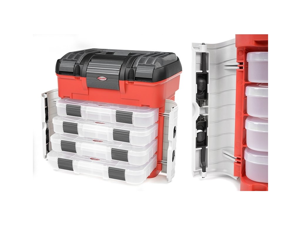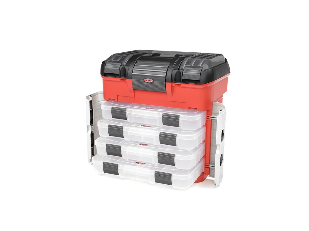 Snadno se zapíná pomocí klipů, což umožňuje praktické a bezpečné uložení. Stačí stisknout dva klipy k sobě, aby se uvolnila bezpečnostní západka, a jednotlivé boxy můžete vyjmout. Tento kufřík TC PIT CASE obsahuje vše, co vám na trati zajistí skutečný pořádek.