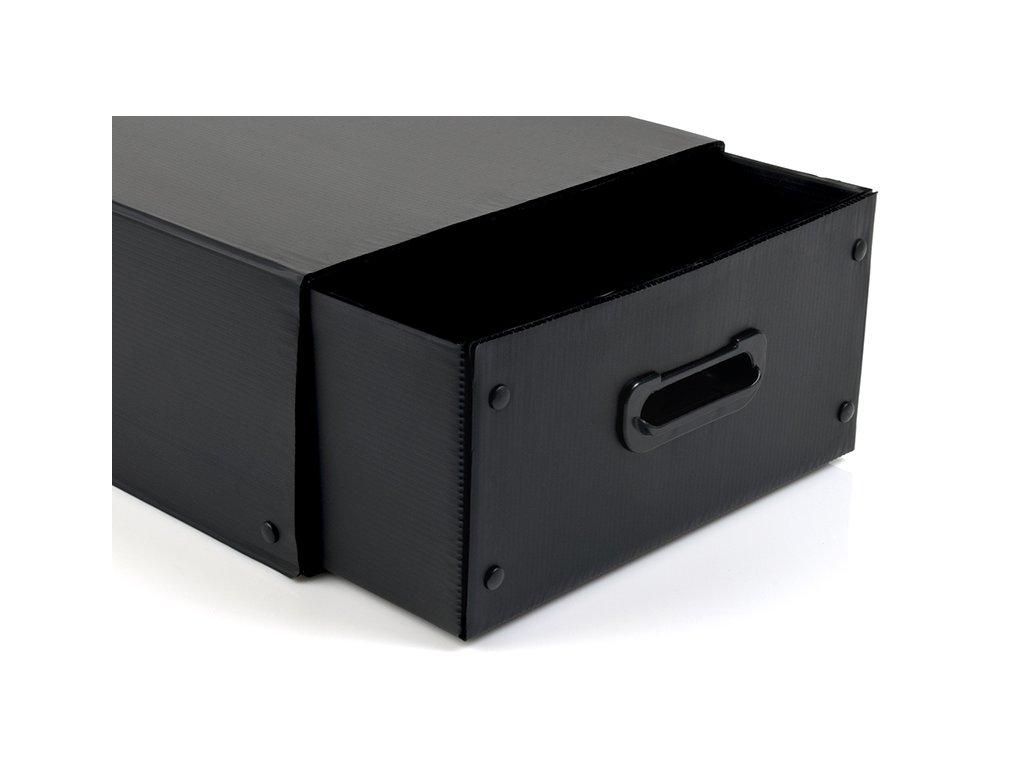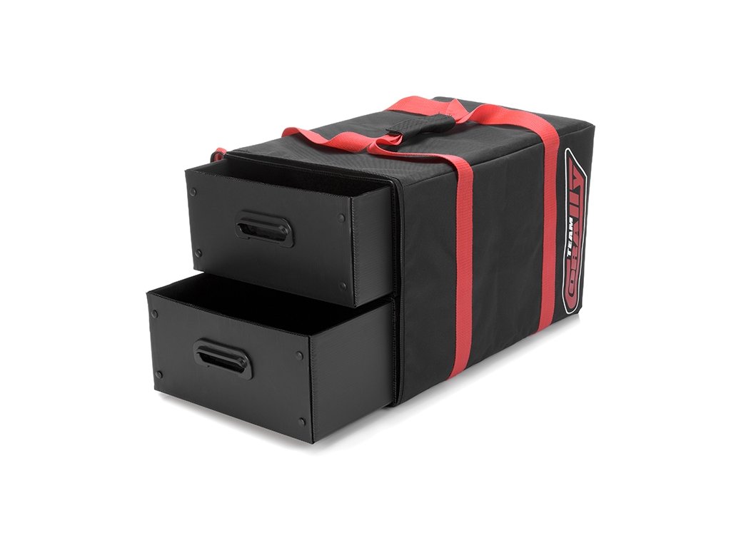 Přepravní taška se dvěma šuplíky pro přepravu příslušenství k RC autům nebo jeho příslušenství. Rozměr šuplíku 30 x 48 x 15 cm, rozměr tašky je 54 x 34 x 33 cm. Šuplíky jsou vyrobeny z plastového kartonu. Úchyty šuplíků jsou vyrobeny z plastového výlisku. Každý šuplík je vsazen do kartónového obalu, čímž je zamezeno jeho vysypání.Doplňkové parametry