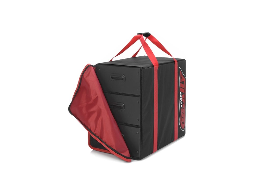Přepravní taška se dvěma šuplíky pro přepravu příslušenství k RC autům nebo jeho příslušenství. Rozměr šuplíku 30 x 48 x 15 cm, rozměr tašky je 54 x 51 x 33 cm. Šuplíky jsou vyrobeny z plastového kartonu. Úchyty šuplíků jsou vyrobeny z plastového výlisku. Každý šuplík je vsazen do kartónového obalu, čímž je zamezeno jeho vysypání.Doplňkové parametry