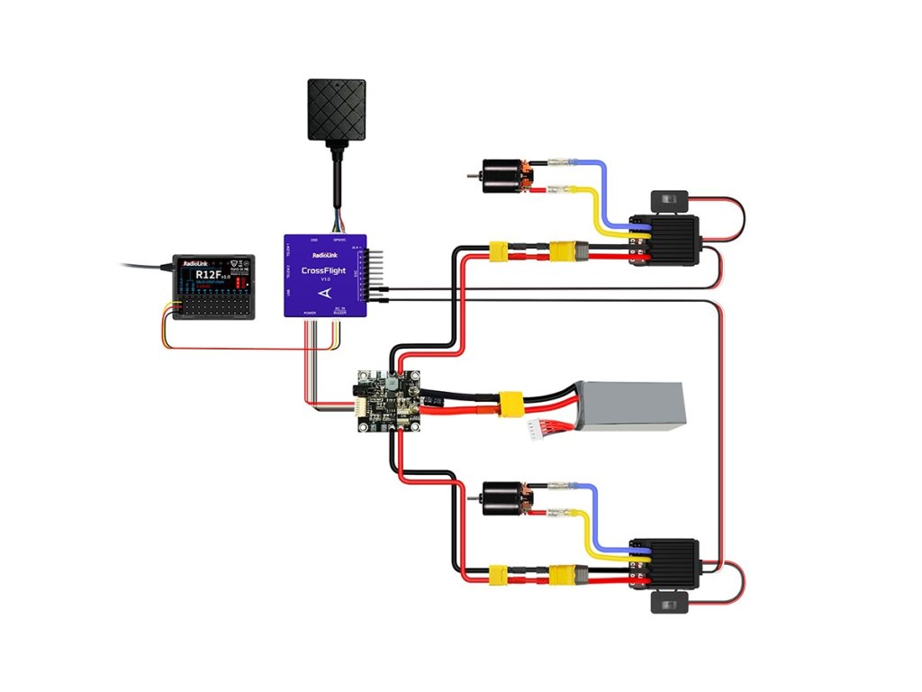 Provozní rozsah napájecích napětí 3–12 V umožňuje fungování s napájením z 1–2S LiPo/Li-ion, 2S LiFe, 4–8čl. NiMH nebo BEC stabilizátorů 5–12 V.