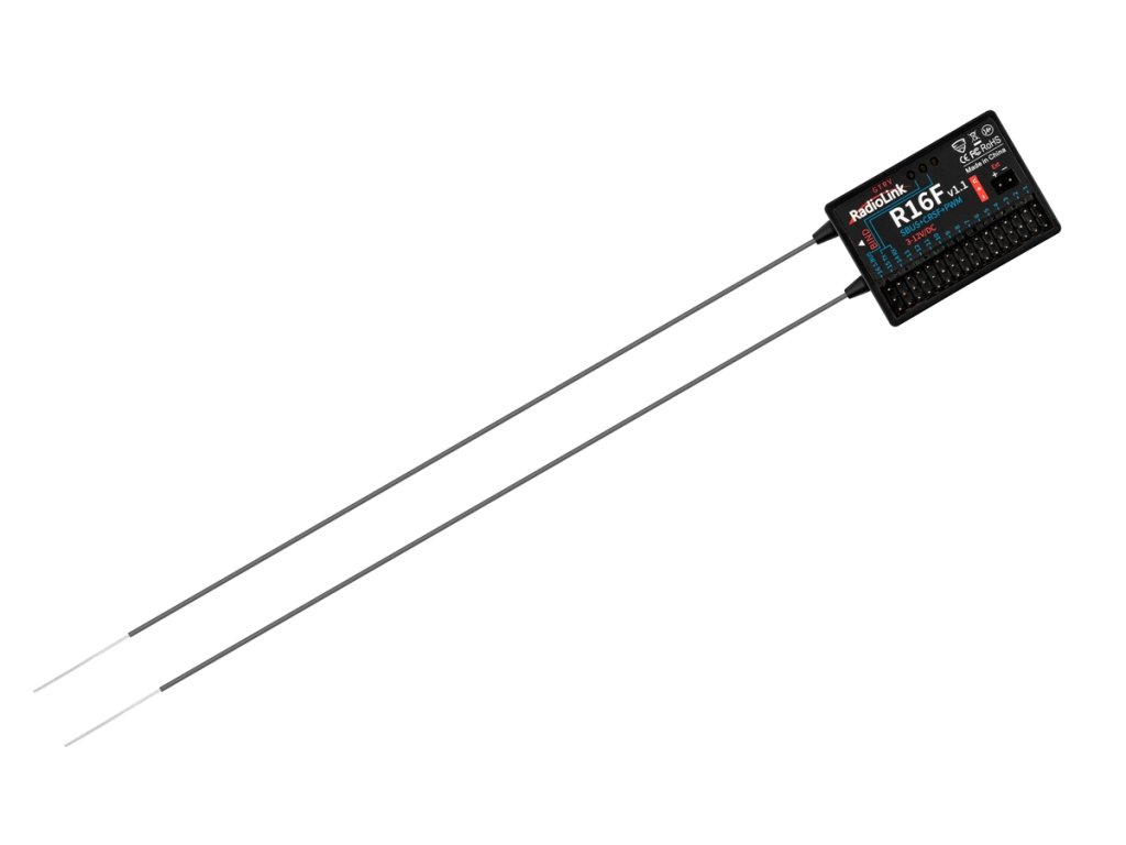 Radiolink R16F 2,4GHz je 16kanálový přijímač FHSS s frekvenčním přeskokem s telemetrií kompatibilní s vysílači Radiolink T12D a T16D. Nabízí čtyři provozní režimy: