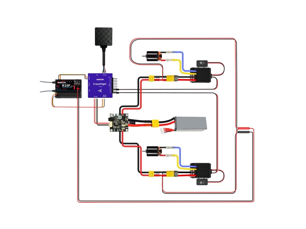 Provozní rozsah napájecích napětí 3–12 V umožňuje fungování s napájením z 1–2S LiPo/Li-ion, 2S LiFe, 4-8čl. NiMH nebo BEC stabilizátorů 5–12 V.
