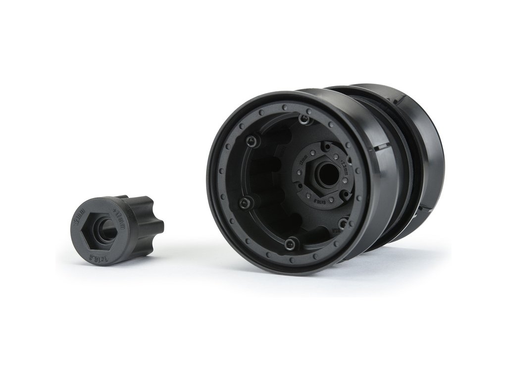 Dvojitý disk Carbine bude perfektně ladit s vaším RC modelem ve vojenském stylu nebo extrémním off-roadem. Disky mají modulární konstrukci, to znamená že je můžete libovolně spojovat. Můžete použít jen jeden disk, spojit dva, nebo i více při zakoupení dalších kusů. Přiložený kryt matice se připevňuje pomocí dvou šroubů a dotváří robustní vzhled. Na disky lze namontovat 4 standardní pneumatiky Pro-Line 1,9“. V balení je adaptér unašeče s úzkým i širokým offset pro přímé, i portálové nápravy.