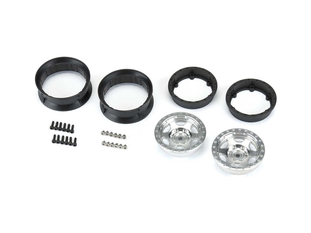 Hliníkové disky Crestline vypadají prostě skvěle! Čelní část disku je hliníková a přesně opracovaná na CNC stroji. Celková šířka a odsazení kol jsou stejné jako u Pro-Line Impulse 1,9". Totožné je taký jedinečný systém montáže pneumatiky bez lepení. Díky jedinečné třídílné konstrukci jsou jednotlivé části kola sešroubovány z vnitřní strany a montáž a demontáž pneumatik je jednoduchá.