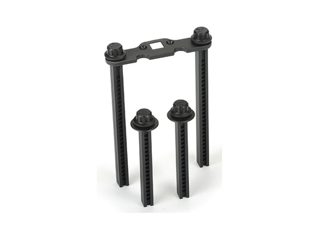 Pro-Line pokračuje v inovacích s dalšími nezbytnými doplňky pro váš Monster Truck. Zcela nová sada pro upevnění karoserie Pro-Line obsahuje nastavitelné držáky, takže můžete na svůj RC model auta perfektně upevnit jakoukoli karoserii! Namísto použití klasických sponek, které se vždy ztratí a ohýbají, Pro-Line Extended Body Mount obsahuje revoluční systém upevnění. Už žádné bodnutí do prstu! Stačí zašroubovat přiložený stavěcí šroub do držáku, umístit O-kroužek na šroub a namontovat karoserii jako obvykle.