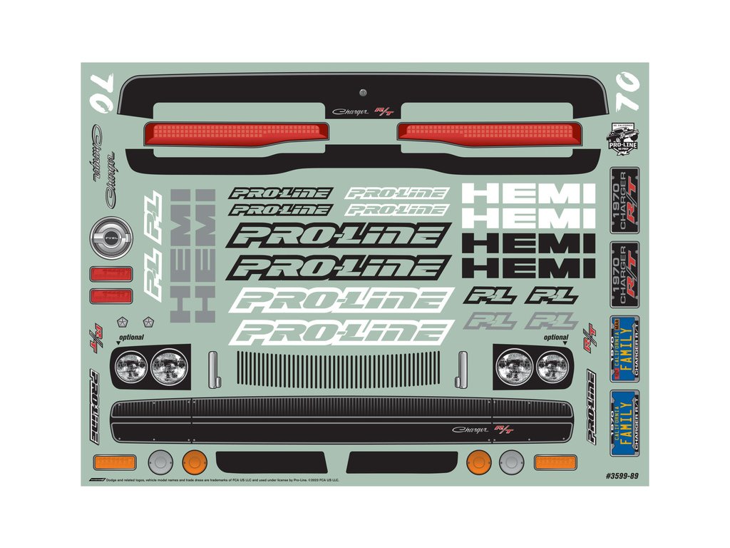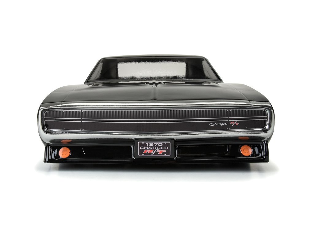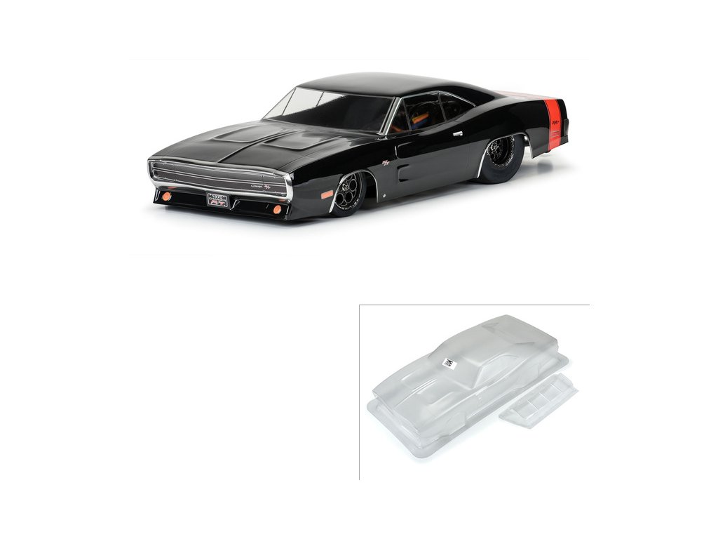 Pro-Line karosérie - skutečný styl amerického muscle car, legendární drag car Dodge Charger z roku 1970, pro RC modely aut v měřítku 1:10. Rozvor 335mm, délka 622mm, výška 137mm. Vyrobeno z odolného čirého lexanu, včetně přídavného spojleru.