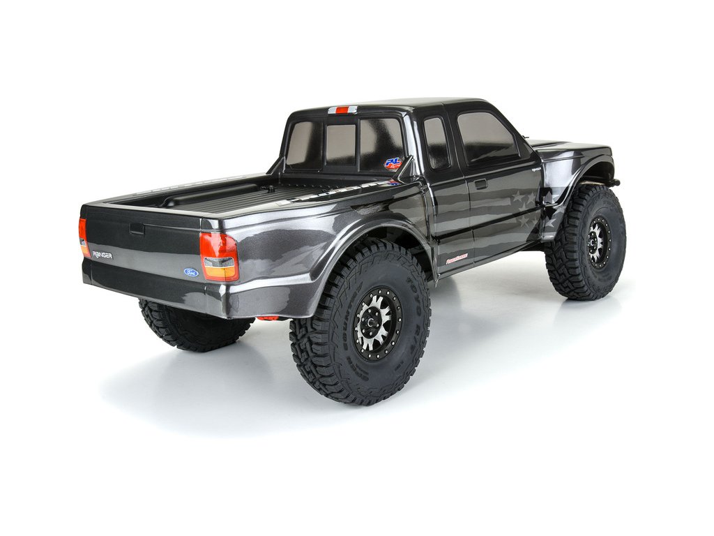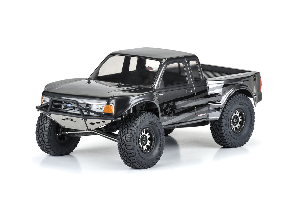 Pro-Line karosérie čirá 1993 Ford Ranger Pre-Runner, pro expediční RC modely auta crawlery v měřítku 1:10, rozvor 313 mm, délka 521 mm, šířka 229 mm. Vyrobeno z odolného lexanu. Tato karoserie má vystouplé agresivní blatníky, které vytvářejí drsný off-roadový vzhled. Větší blatníky vám dávají možnost provozovat model a větší koly.