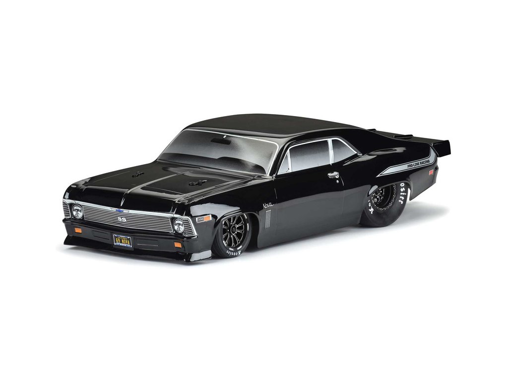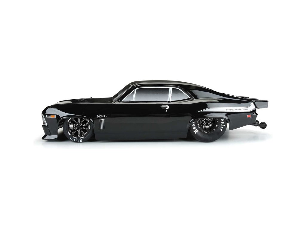 Pro-Line karosérie černá 1969 Chevrolet Nova Drag Car, pro RC modely aut v měřítku 1:10, rozvor 335mm, délka 561mm, výška 147mm. Vyrobeno z odolného lexanu.
