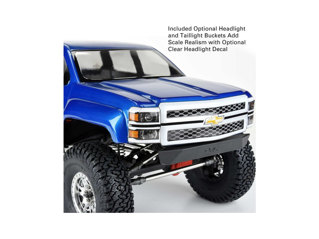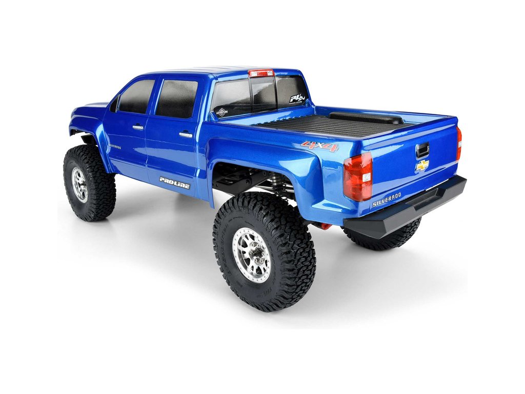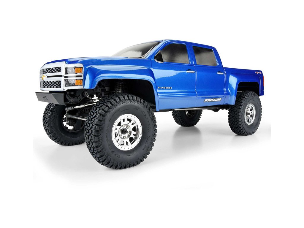 Pro-Line plní přání a nabízí licencovanou karosérii 2015 Chevrolet Silverado s dlouhým rozvorem. Moderní karosérie Silverado™ je vybavena kabinou Crew Cab a obsahuje volitelné přední a zadní světlomety pro větší realismus. Tato karoserie je perfektní na podvozky Axial® SCX10™ III s prodlouženým rozvorem nebo jako upgrade vašeho vozu Axial® RTR Jeep® Gladiator SCX10™ III. Karosérie obsahuje klec na valník, vyrobenou z několika kusů polykarbonátu. Možnosti jsou s tímto tělem neomezené! Proměňte vzhled svého nákladního vozu s dlouhým rozvorem pomocí této realistické karosérie Chevrolet® Silverado™ Crawler z roku 2015 od Pro-Line!