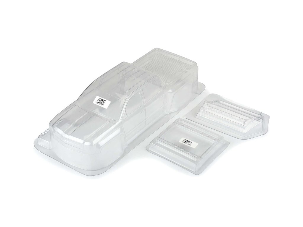 Pro-Line karosérie čirá 2015 Chevrolet Silverado 13.9" WB, pro RC modely aut Axial® SCX10III™ Jeep JT Gladiator v měřítku 1:10, rozvor 353mm, délka 533mm, šířka 178mm. Vyrobeno z odolného lexanu.