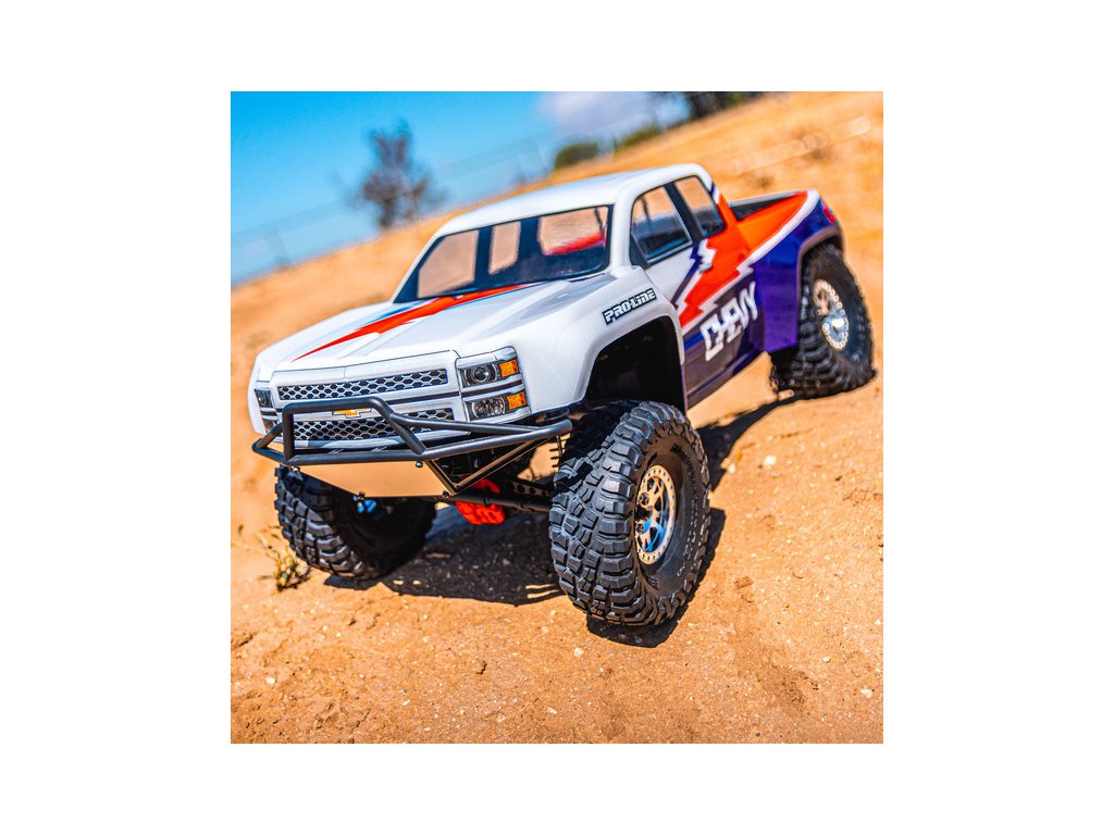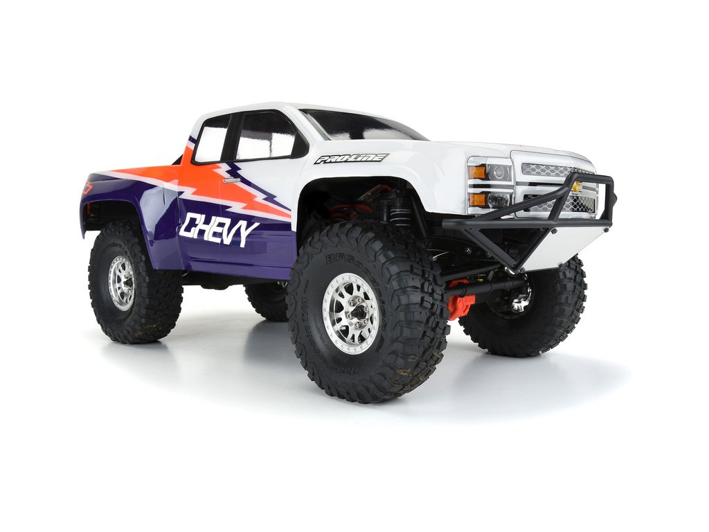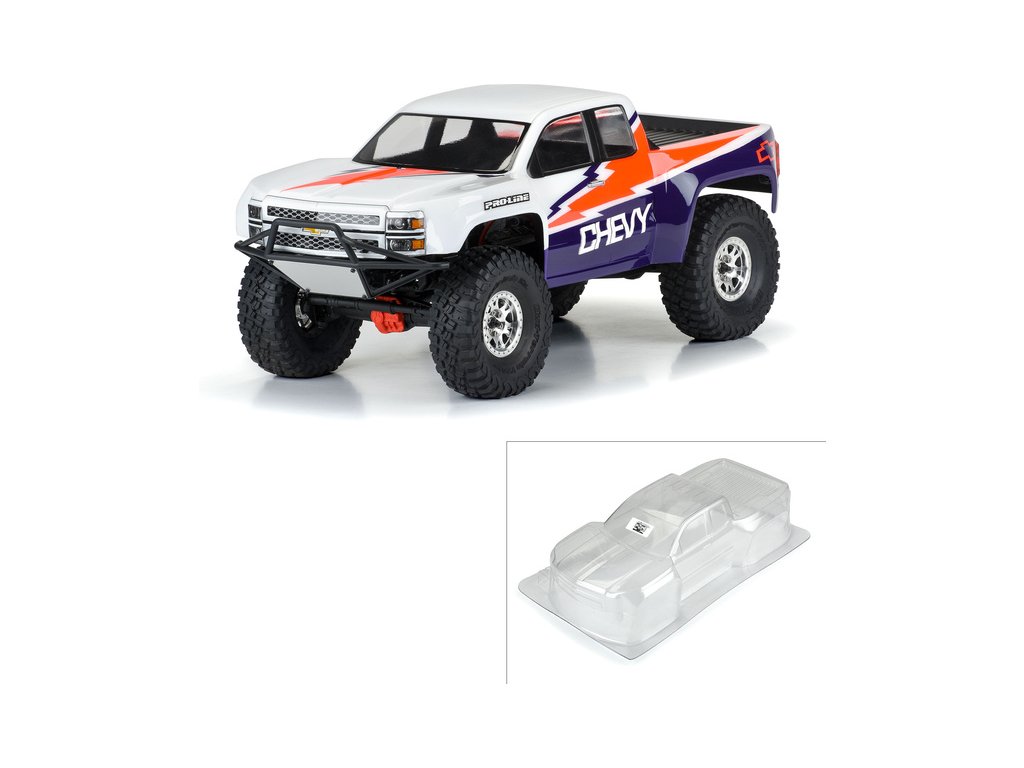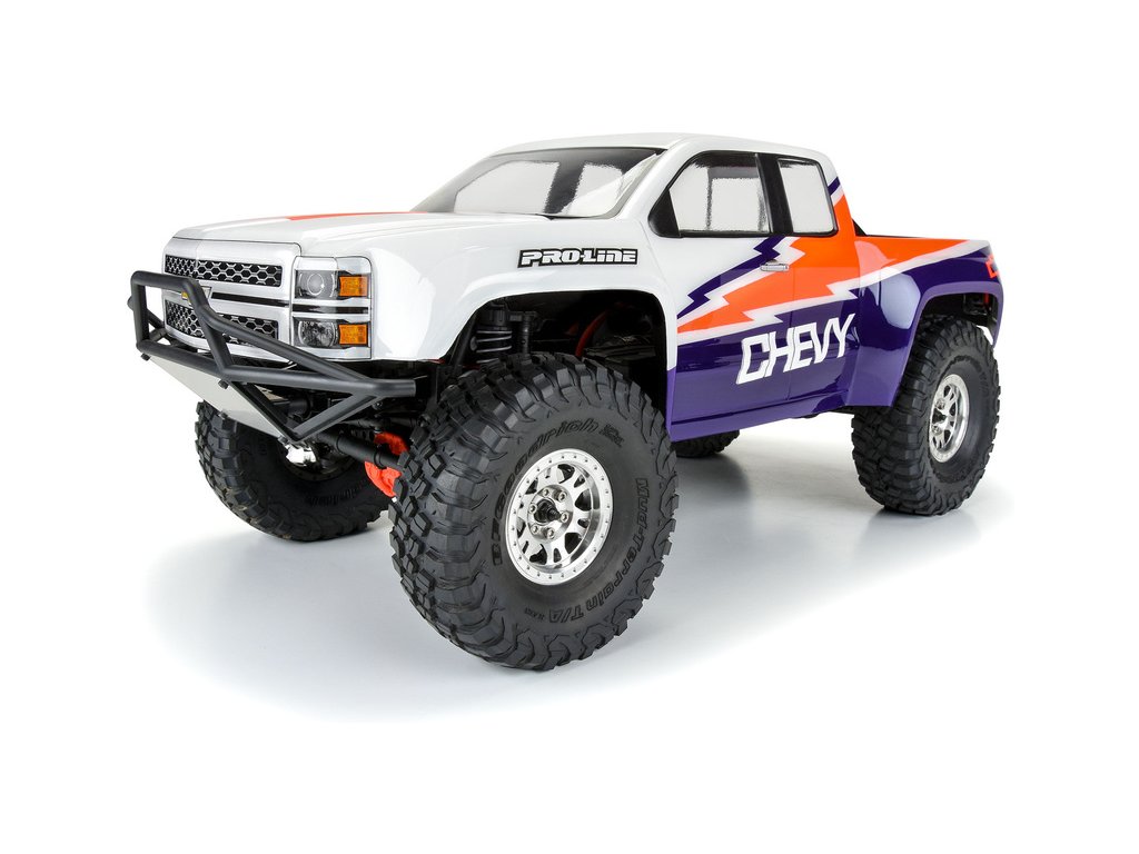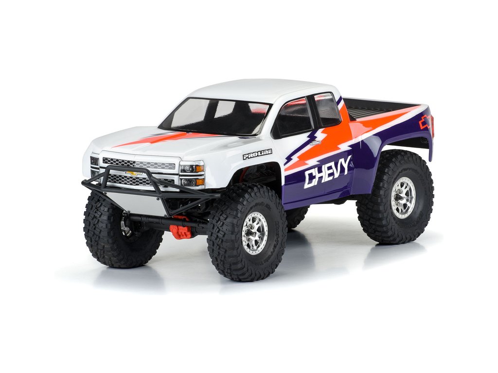 Licencovaná karoserie 2015 Chevy® Silverado™ Pre-Runner pro 12,3" (312 mm) expediční a crawler podvozky. Populární moderní styl Silverado™ se kombinuje s blatníky ve stylu pouštního závodního vozu. Karoserie se vyznačuje prodlouženou kabinou s krátkým lůžkem. Změňte vzhled svého modelu s realistickou nástavbou Chevrolet® Silverado™ 2015 od Pro-Line! Tato karoserie je perfektní například na RC modely aut SCX10-II™ nebo SCX10-III™.