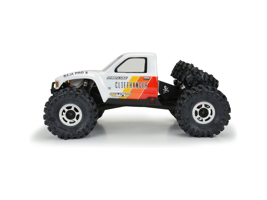 Karoserie Pro-Line, pro všechny fanoušky náklaďáků, nyní můžete získat ve stylu Cliffhanger ve formátu pouze s kabinou. Tento design ve stylu JDM z 80. let má akční dravou přední část závodního stylu a je připraven na monráž vašeho valníku, který si můžete doplnit podle vaší fantazie a možností. Cliffhanger je vyroben z jednoho kusu čirého polykarbonátu a obsahuje polykarbonátové světlomety. Obsahuje obtiskový arch, masky na okna a přestřikovací fólii barvy a poté odlupování. Nezůstávejte pozadu na skalách, pořiďte si své vlastní karosérii Cliffhanger ještě dnes!