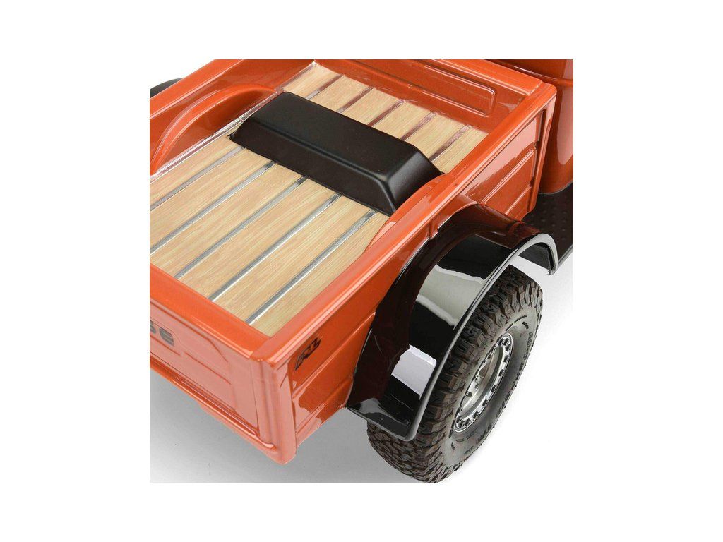 Parádní karosérie historického klasického náklaďáku Dodge Power Wagon z roku 1946. Realistická detailní 2-dílná karosérie s budkou, velkými blatníky chladičem a velkým valníkem má samostatné kulaté světlomety navržené tak, aby umožňovaly doplnit osvětlení z LED pro maketový vzhled.
