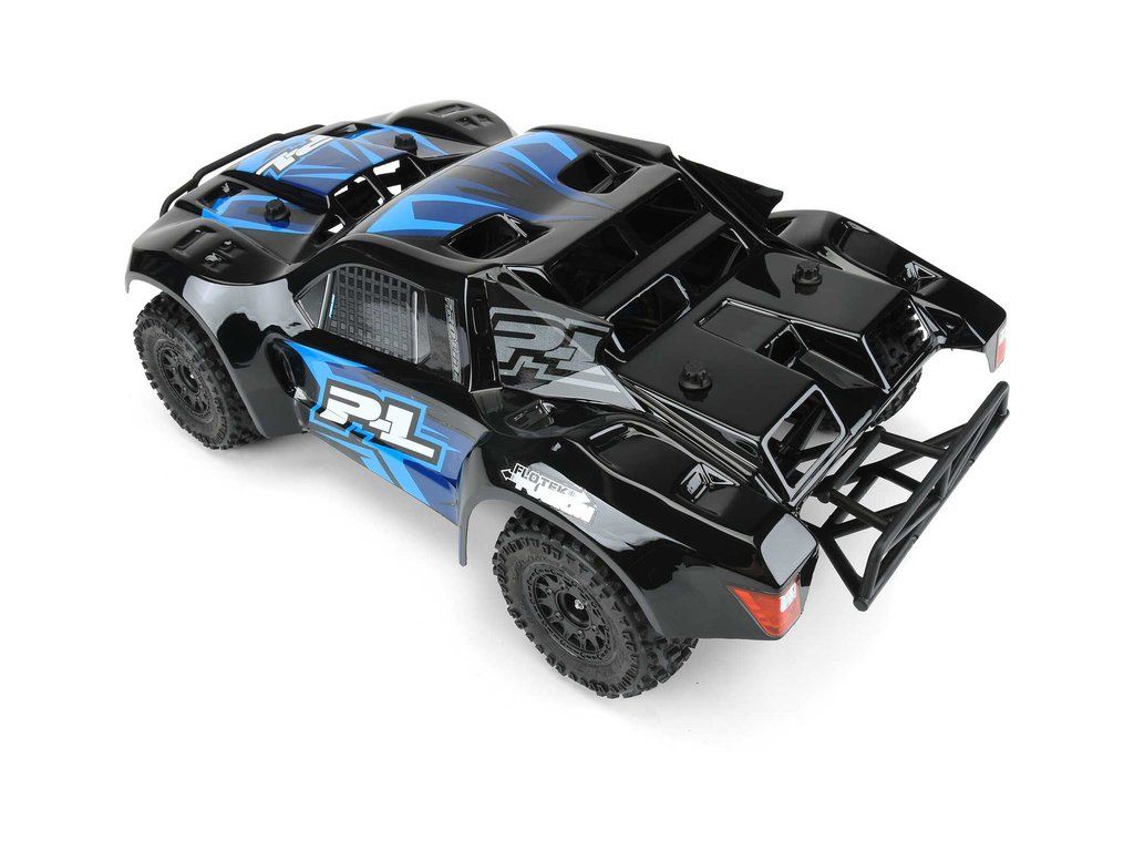 Pro-Line černá karosérie Flo-Tek Fusion Black, pro RC modely aut Short Course v měřítku 1:10, rozvor 323mm, délka 546mm, šířka 235mm. Vyrobeno z odolného lexanu.