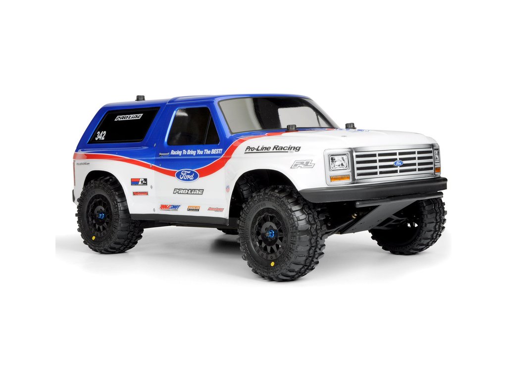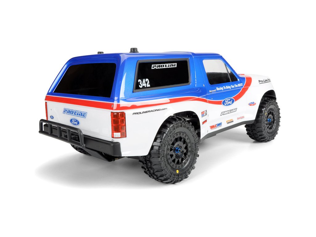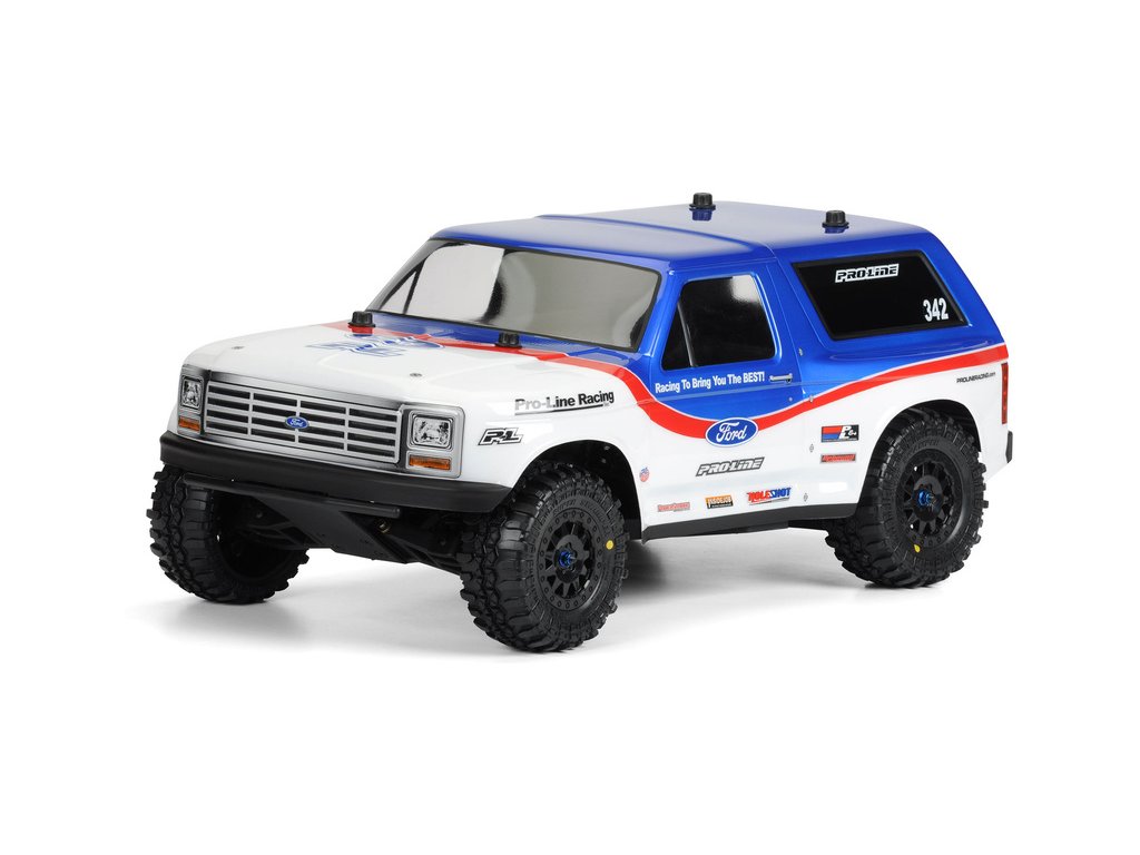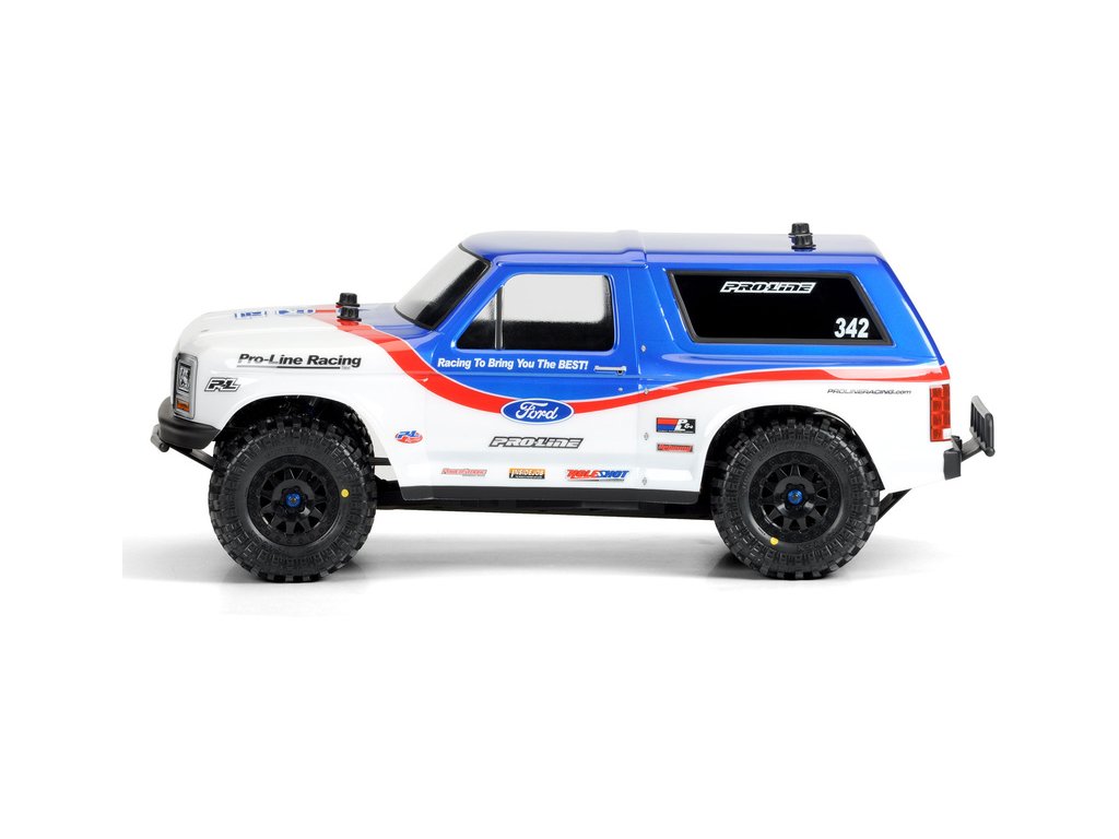 Pro-Line karosérie pro RC modely aut Short Course, je Ford® Bronco. Pro-Line nabízí karosérii model 1981 s rozvorem 330mm, vybaven je přední mřížkou, světlomety, lištami karoserie a řadou detailů. Arch samolepek obsahuje přední mřížku, přední, zadní a boční světla, kliky, loga a nápisy. Karosérie je čirá a obsahuje masku oken. Po nastříkání aplikujte obtisky a máte hotovo.
