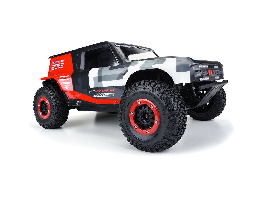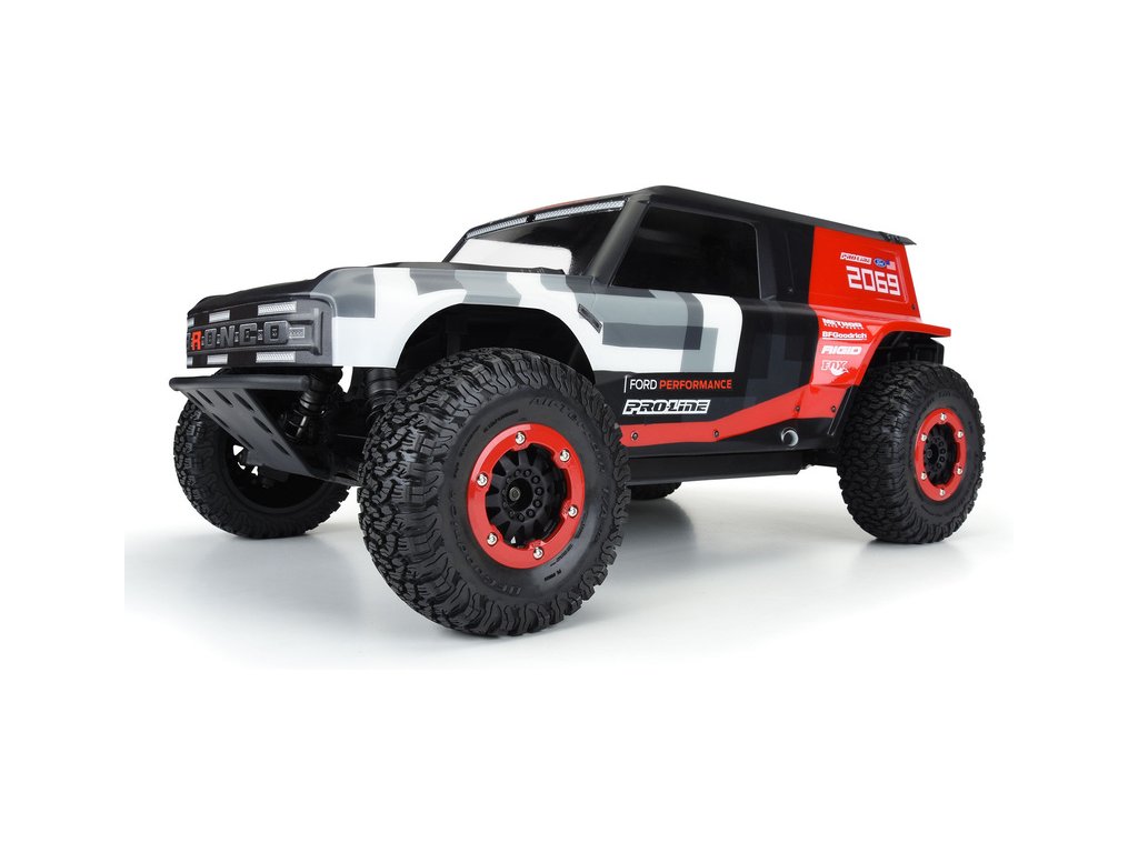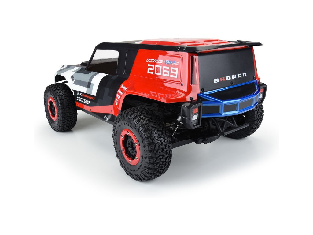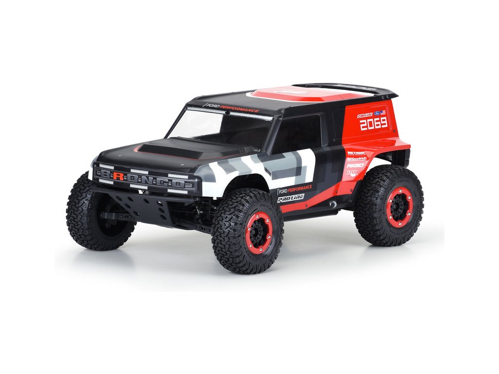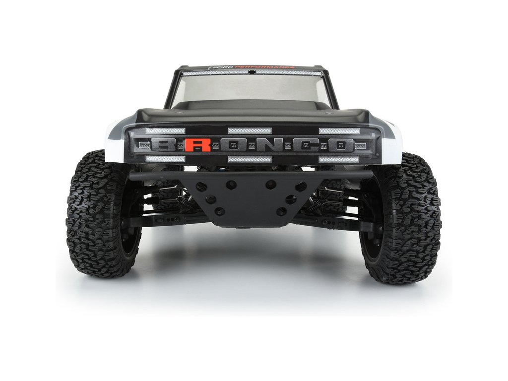 Společnost Pro-Line nabízí nejnovější závodní karosérii vozidla Ford Bronco R pro váš RC model Short Course v měřítku 1:10. Karoserie Bronco R přebírá designové prvky z nového Bronco 2021, ale má velké blatníky, které umožňují použití skutečných terénních pneumatik. Karoserie je čirá, takže si vzhled můžete přizpůsobit vlastním barevným kreacím. Set obsahuje přídavný zadní spoiler a přídavný zadní nárazník se zadními světly stejně jako u plnohodnotného nákladního vozu. Karoserie Bronco R zcela promění váš nákladní vůz SC na skutečného terénního závodníka. Získejte svůj vlastní závodní vůz s karosérií Pro-Line Bronco R s průhlednou karoserií ještě dnes!