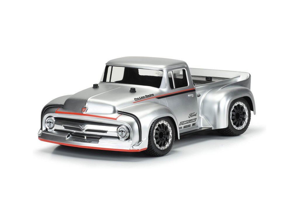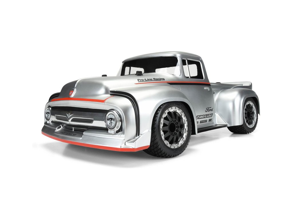 Pro-Line karosérie čirá 1956 Ford F-100 Pro-Touring Street Truck, pro RC modely aut v měřítku 1:10, rozvor 325mm, délka 554mm, výška 178mm. Vyrobeno z odolného lexanu.